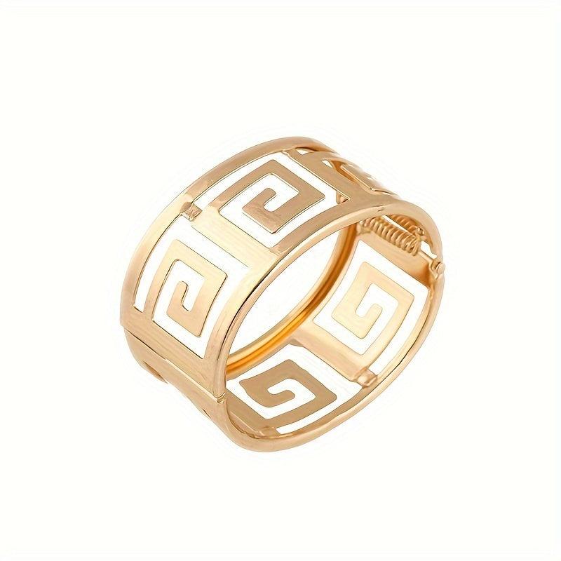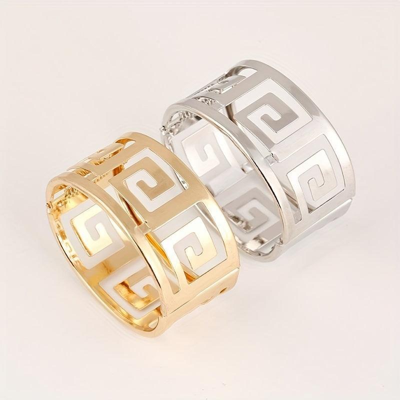 Add a touch of elegance with this sleek open cuff bracelet featuring a geometric design and a golden metallic finish. Perfect for parties or casual wear, this versatile accessory is a stylish addition to any outfit.