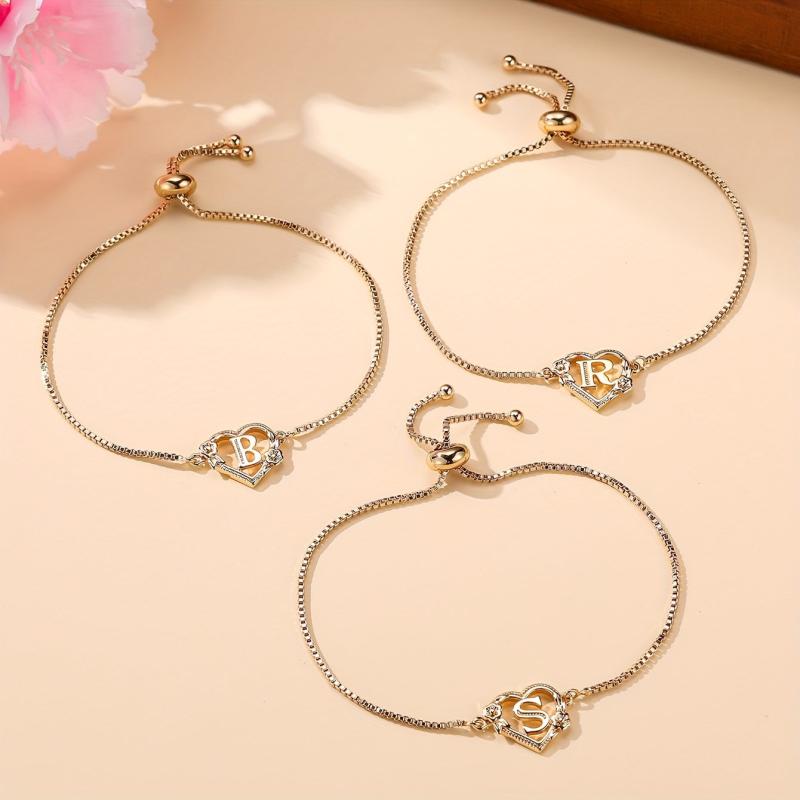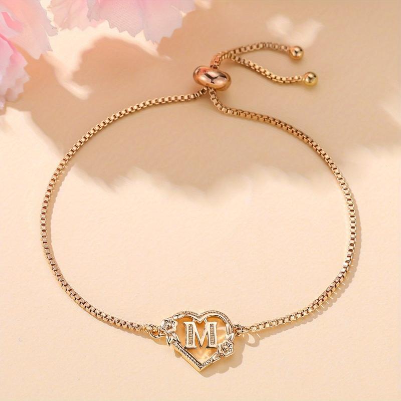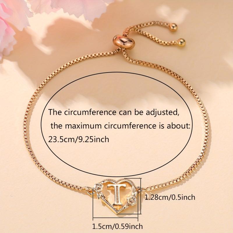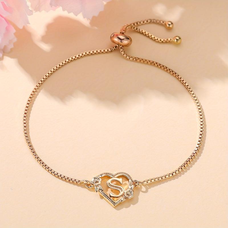 This simply styled bracelet features a golden heart with your initial in a beautiful floral design. Perfect for daily wear or parties, it makes a great gift for any lady.