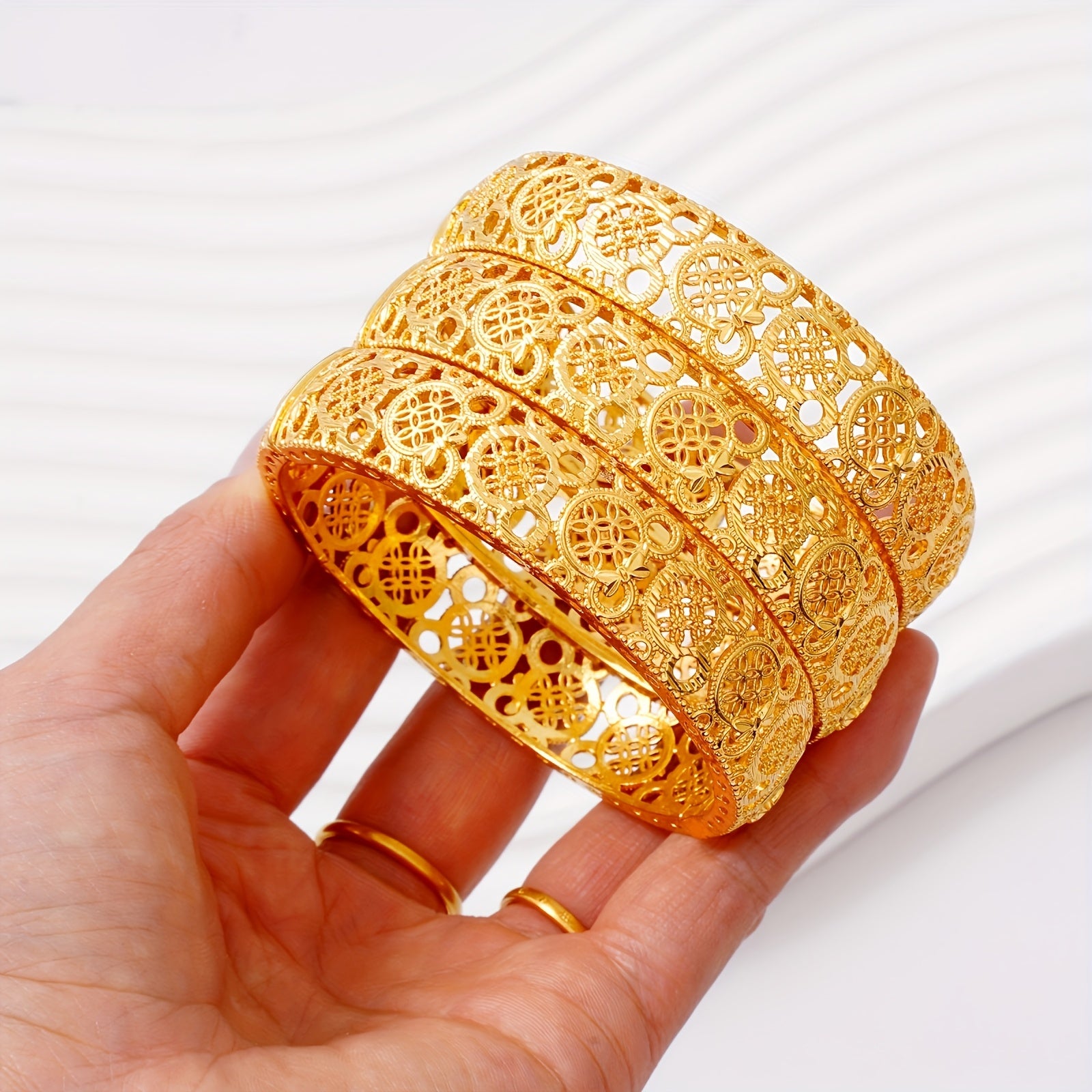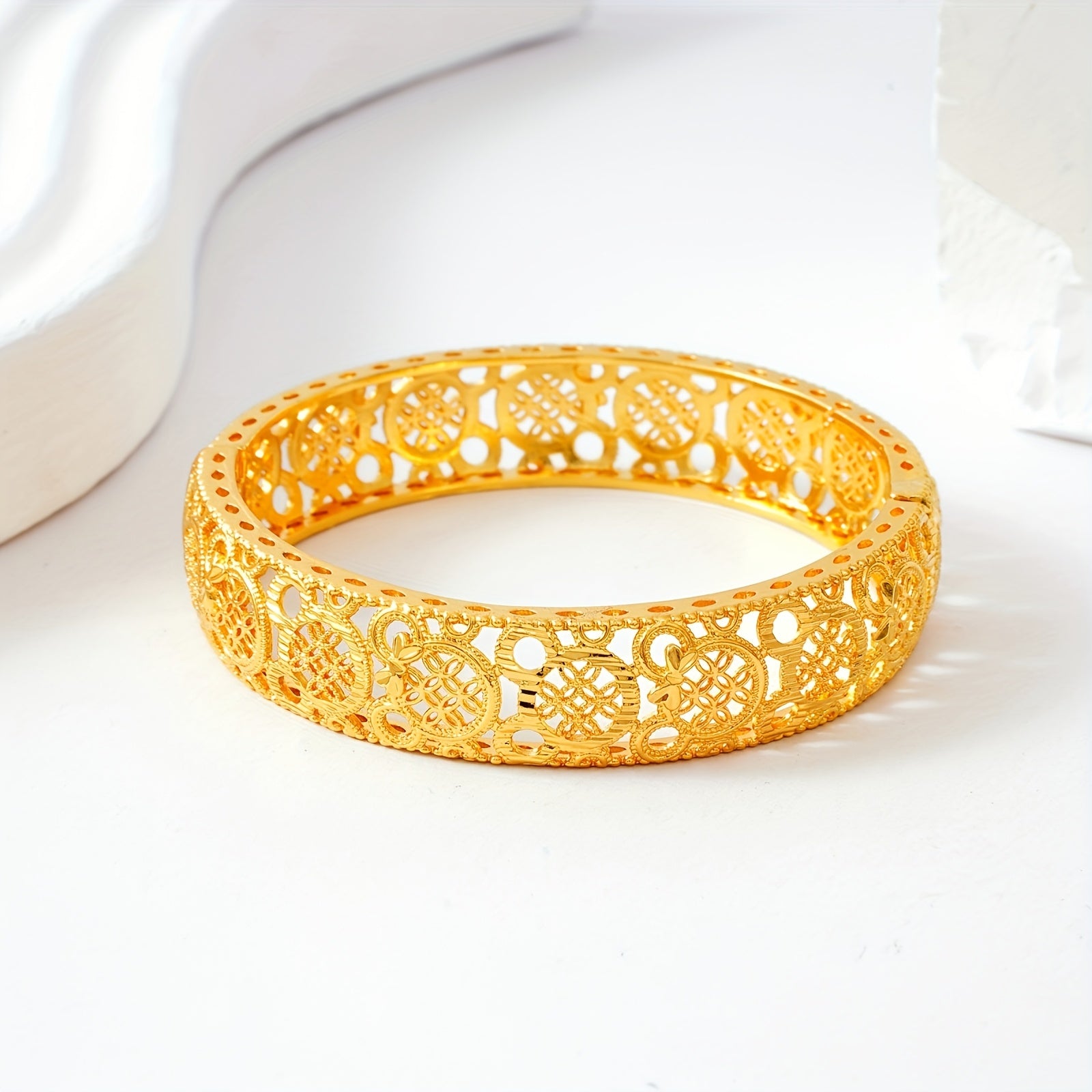 This beautiful bracelet features a hollow carved design, perfect for adding a touch of elegance to any outfit. It makes a great holiday gift for women, suitable for Dubai brides or anyone who loves European and American ethnic style jewelry.