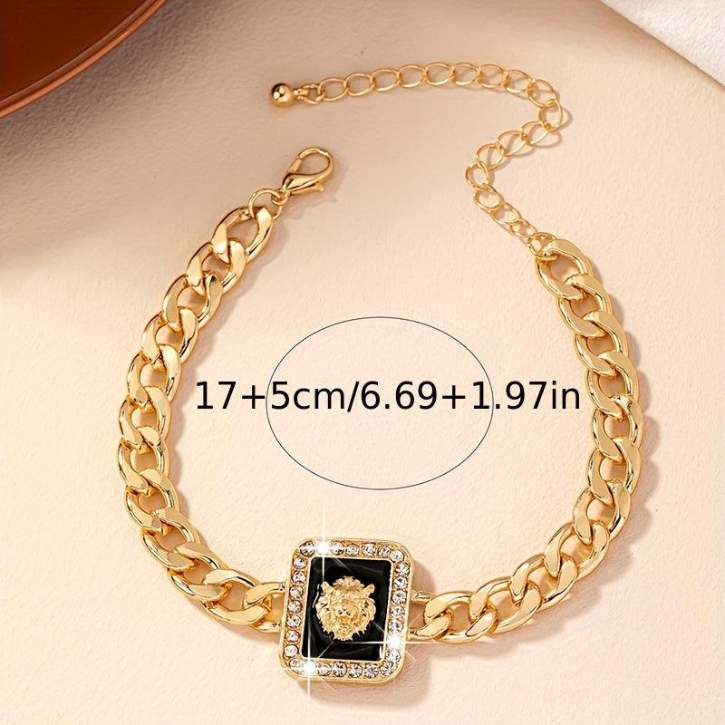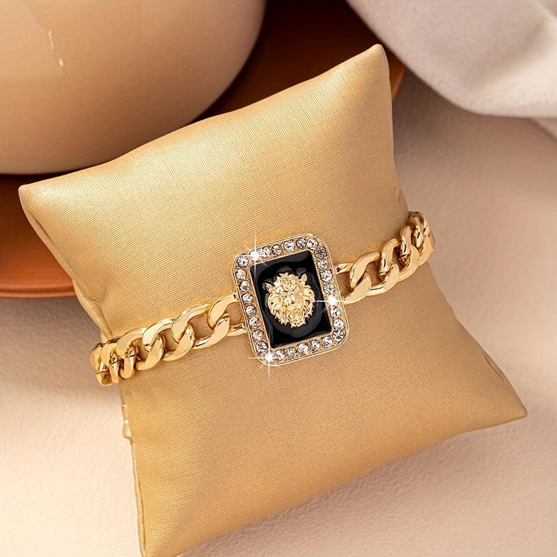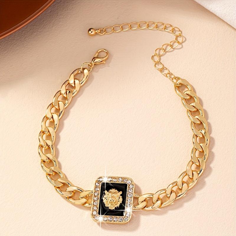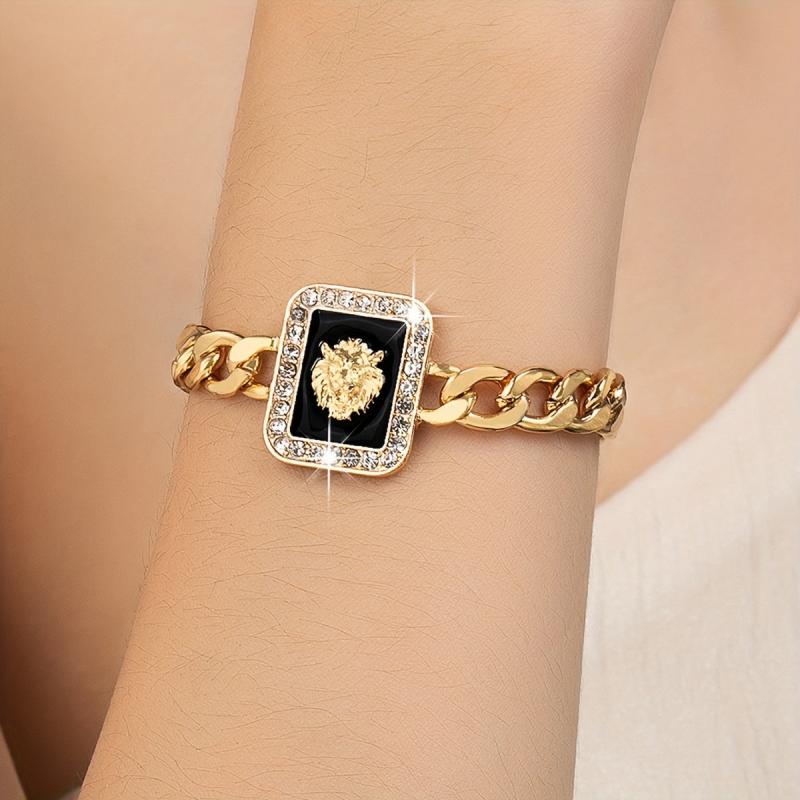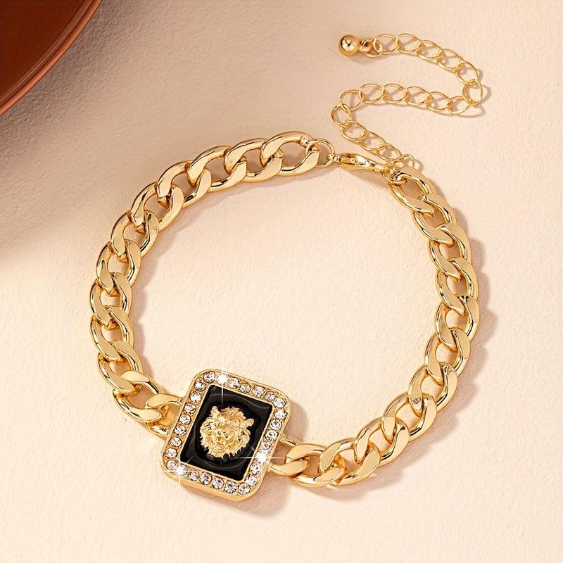 Elevate your style with this stunning bracelet featuring a golden lion's head. The irregular geometric design adds a unique touch to any outfit.