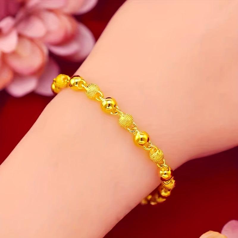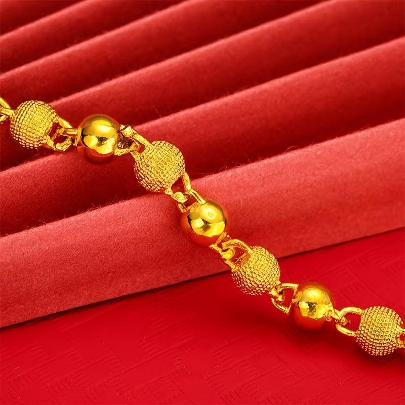 Elevate your bracelet game with this stylish jewelry accessory. Features round beads with a mix of golden and matte finishes.