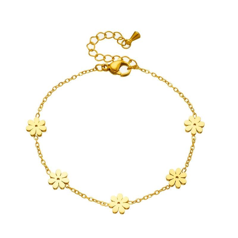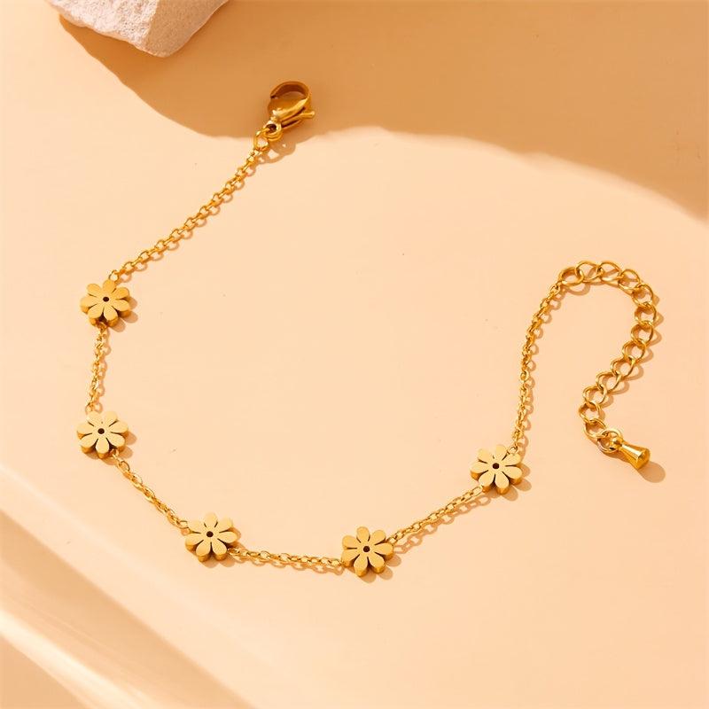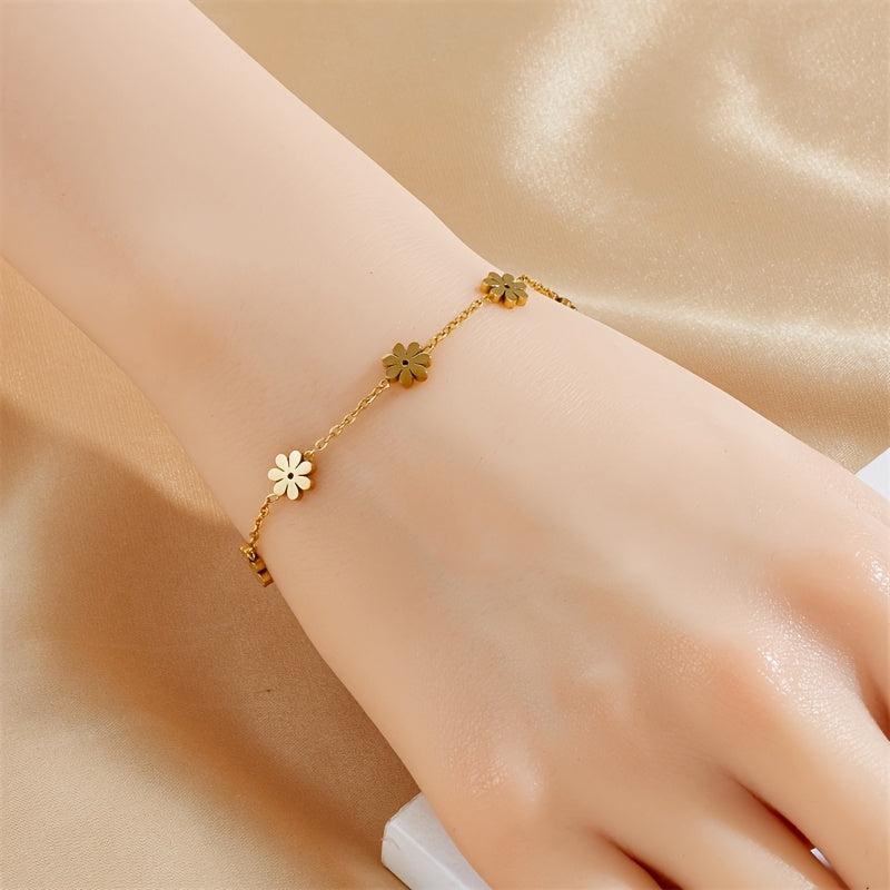 Golden Stainless Steel Bracelet with Flower Charms for Women