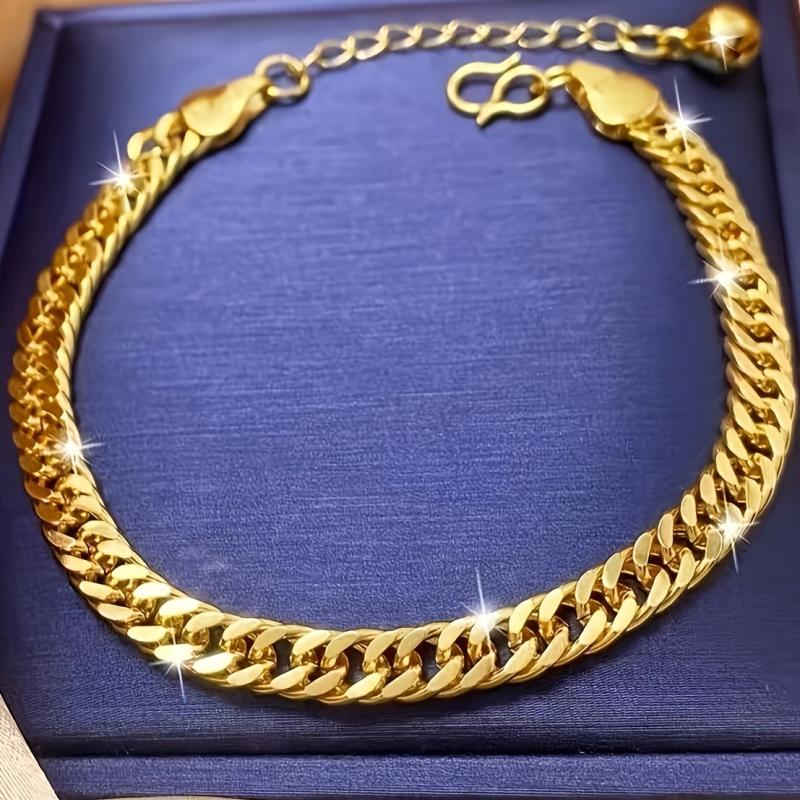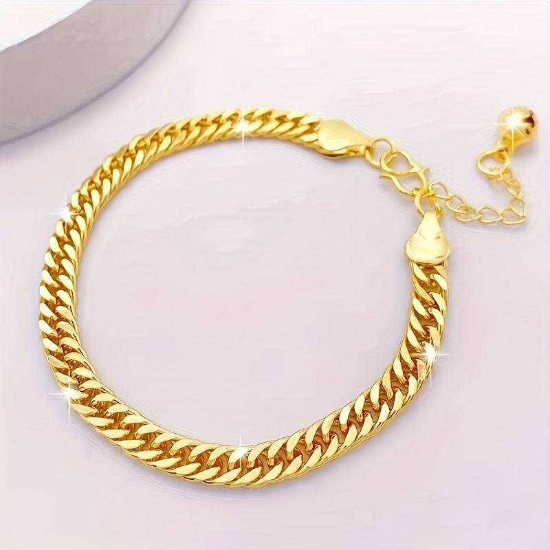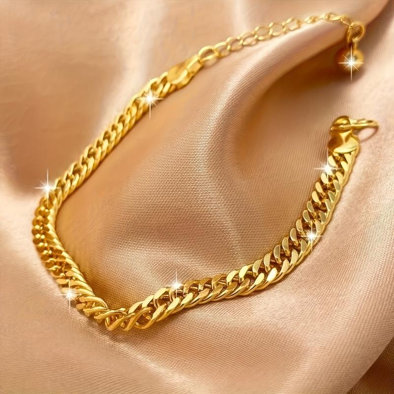 Golden Stainless Steel Double Row Bracelet for Women 6mm Wide Chain