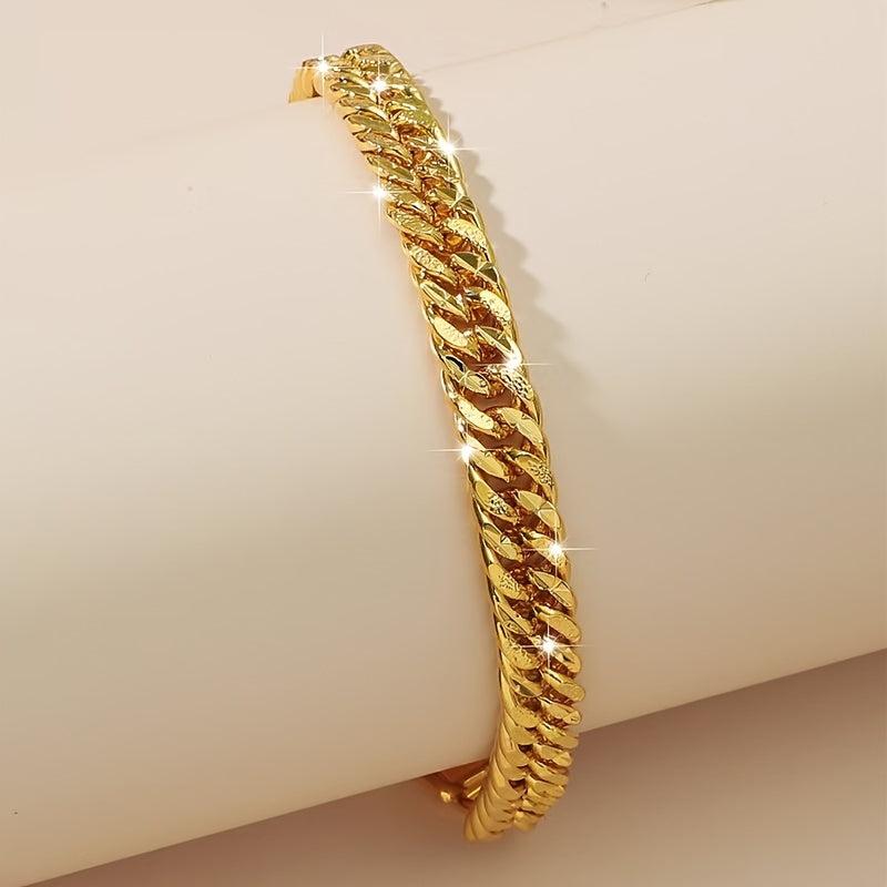 This fashionable double row bracelet is made of stainless steel with a golden finish, providing a hip hop style. It is perfect for casual attire, parties, and vacations.