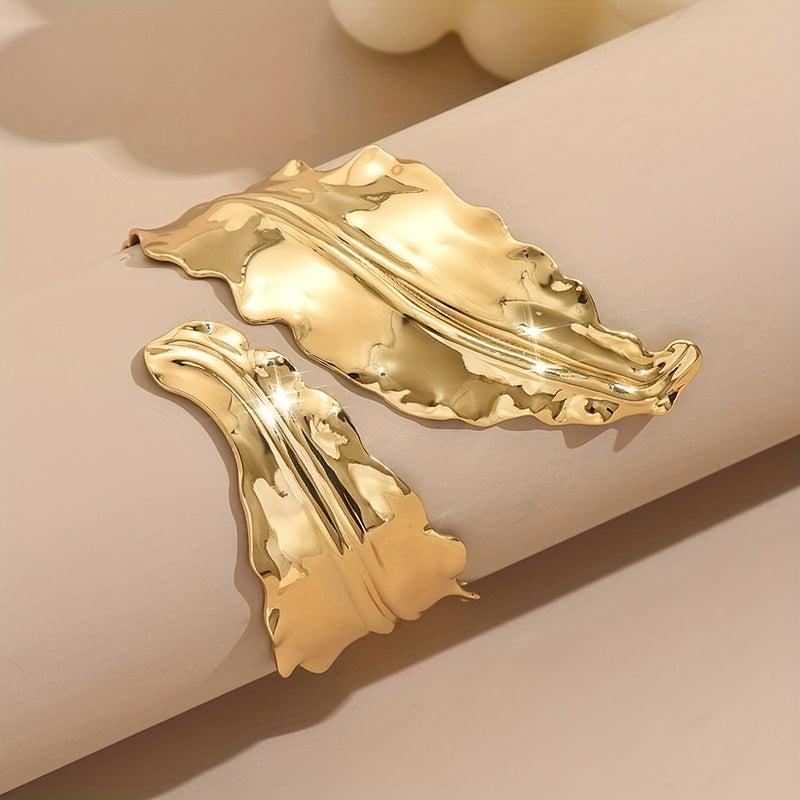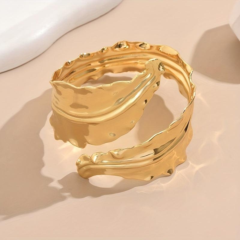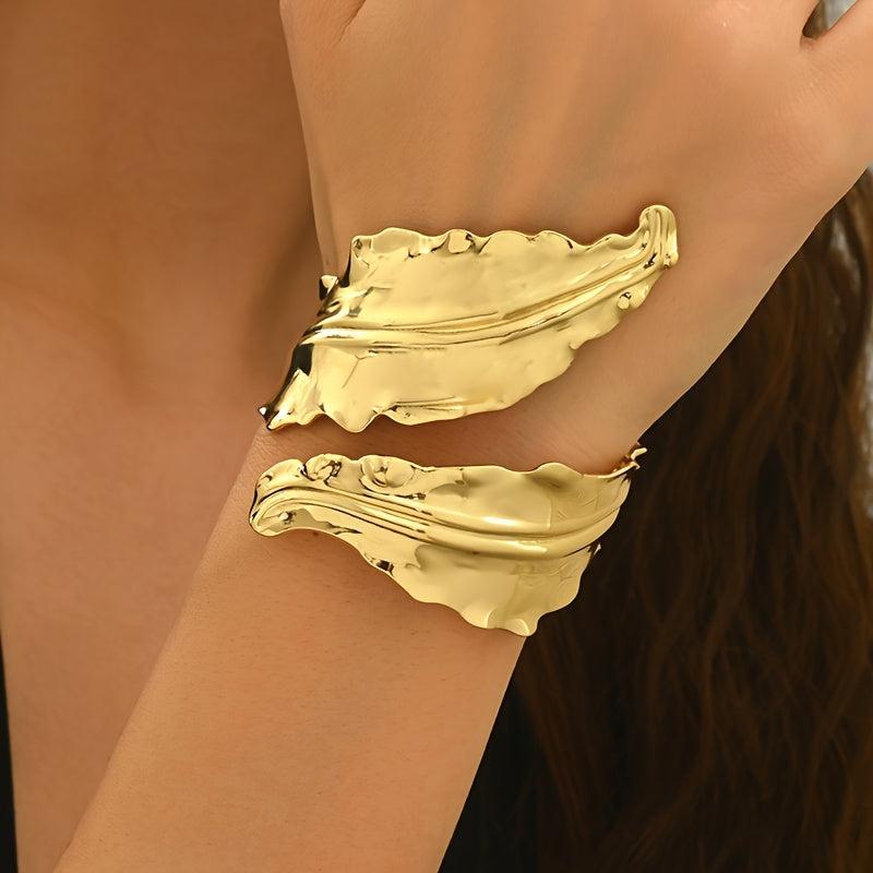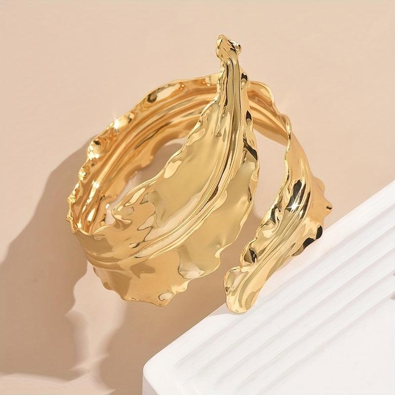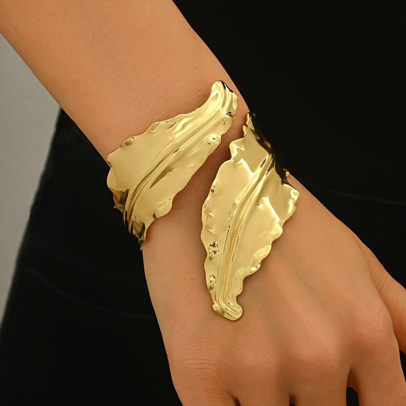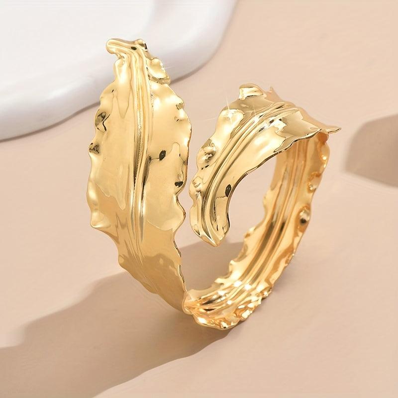 Add a touch of style to your daily wear or party outfits with this elegant cuff bracelet. The adjustable iron bangle features a bold geometric leaf design that makes it a statement accessory for all seasons.