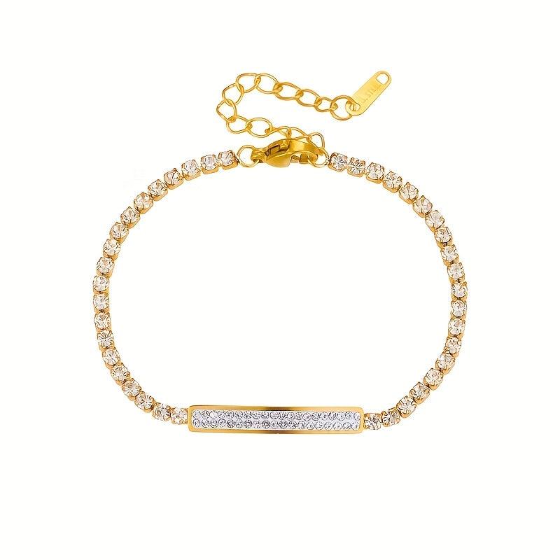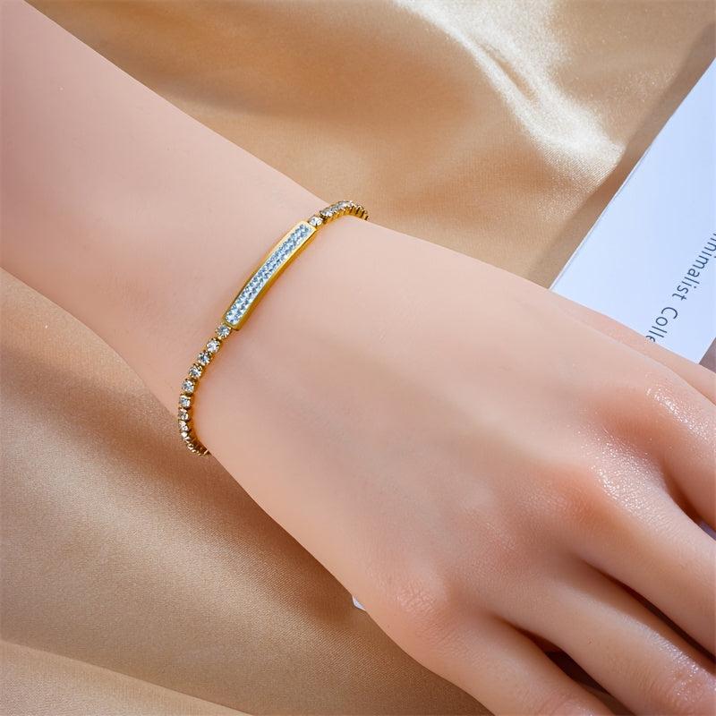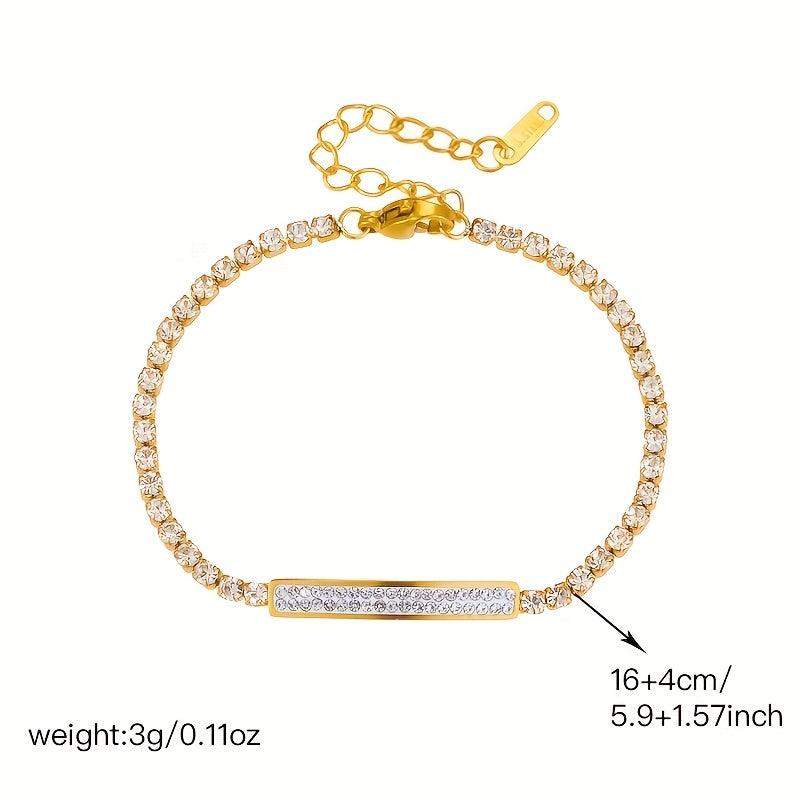 This elegant bracelet features a golden tone stainless steel design with sparkling cubic zirconia accents, making it a perfect accessory for daily wear or a thoughtful holiday gift for women.