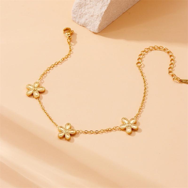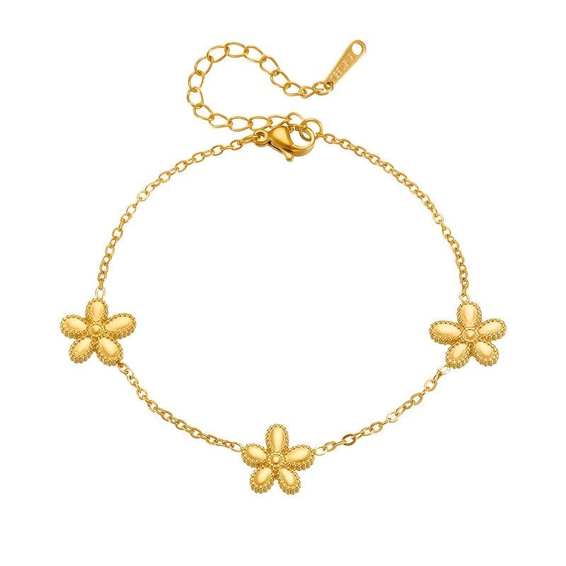 Bohemian-inspired three flower bracelet made of durable stainless steel. Perfect for everyday wear and parties. Ideal gift for her.