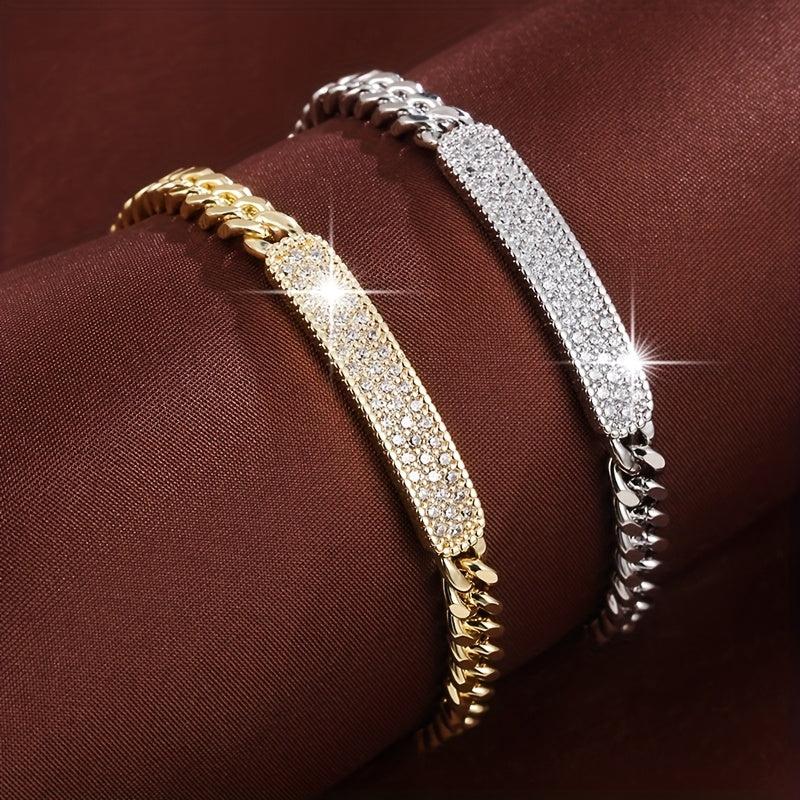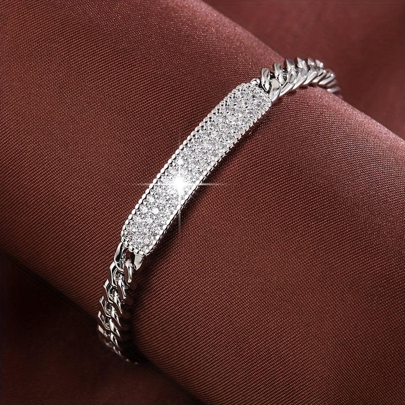 Elegant bracelet featuring synthetic zirconia stones in a long bar design. Perfect for casual outfits or as a thoughtful gift.