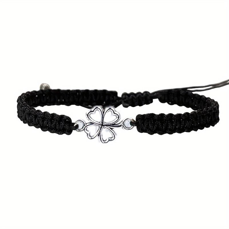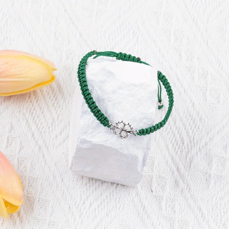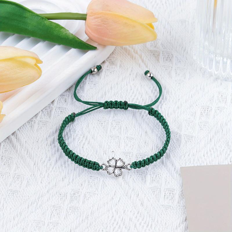 Bring luck wherever you go with this four leaf clover bracelet. Ideal for him, her, mother, sister, or as a birth gift. The adjustable woven spring design ensures a perfect fit.