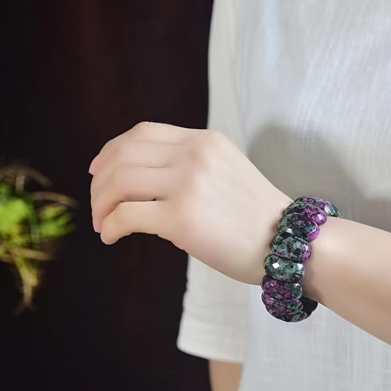 Handcrafted green zoisite stone bangle featuring epidote gemstone, a stylish accessory for both men and women. Perfect gift for Mother's Day or Valentine's Day.