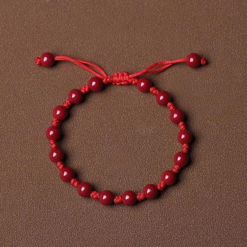This handcrafted bracelet features 6mm Bohemian red cinnabar beads, making it perfect for both casual attire and special occasions. It serves as a good luck charm as well.