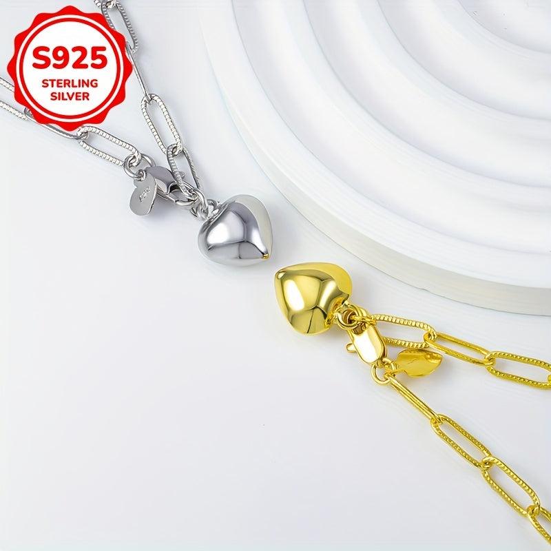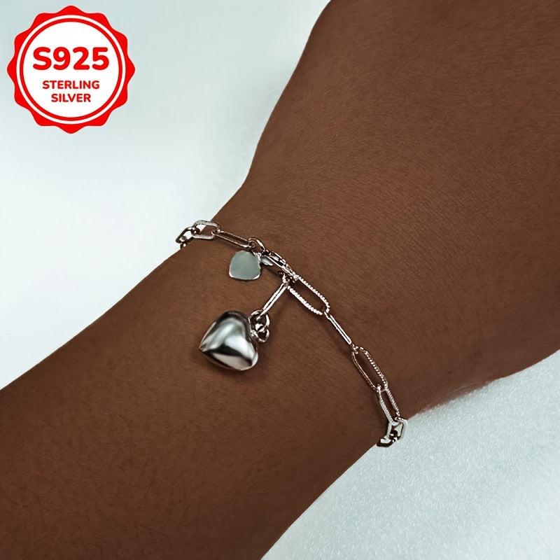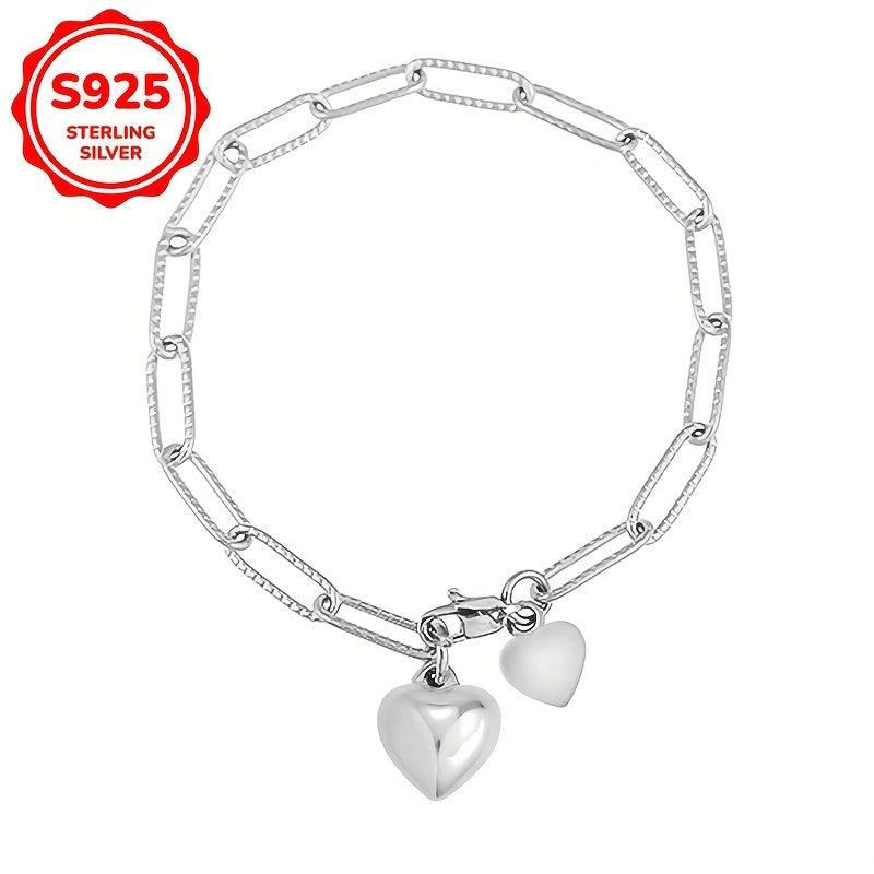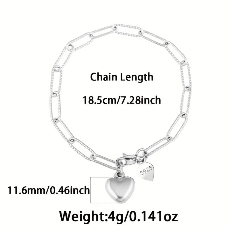 Heart 925 Silver Bracelet Square Chain Elegant Design