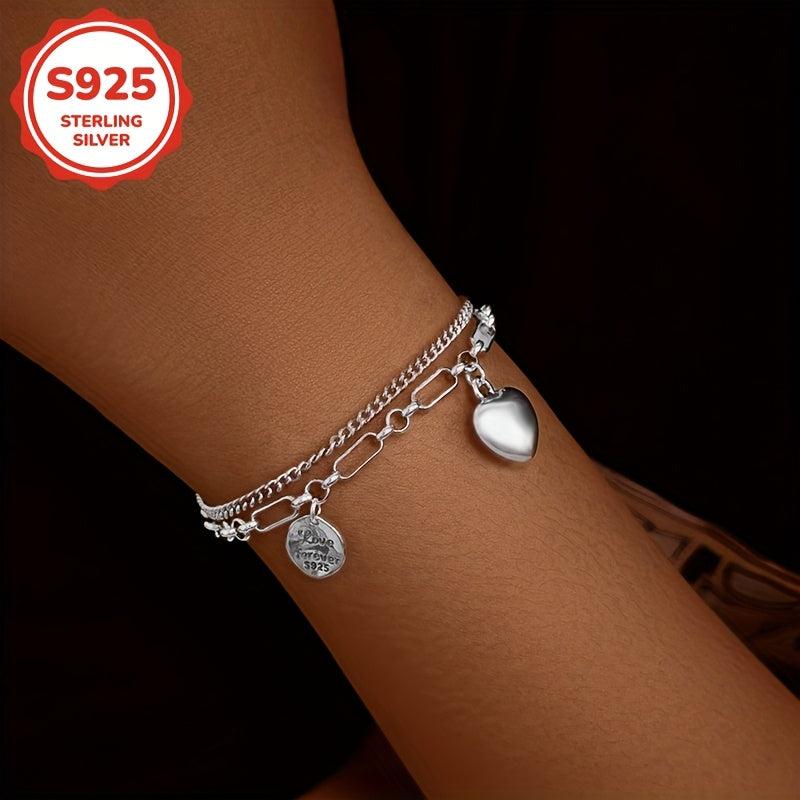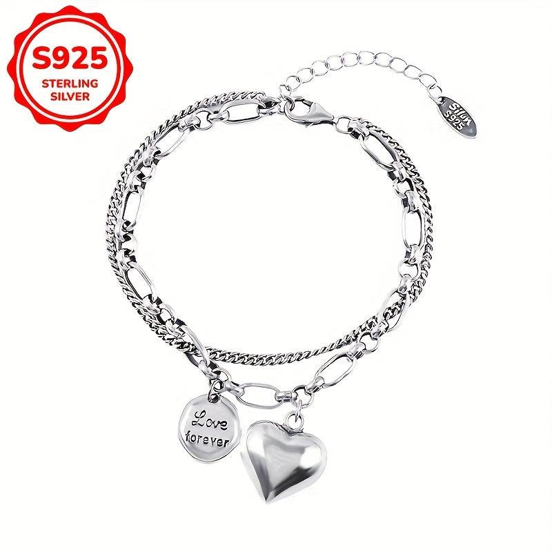 Elegantly designed double layer heart-shaped bracelet made of 925 silver, weighing 5g. Perfect for daily wear, social events, parties, vacations, and gifting.