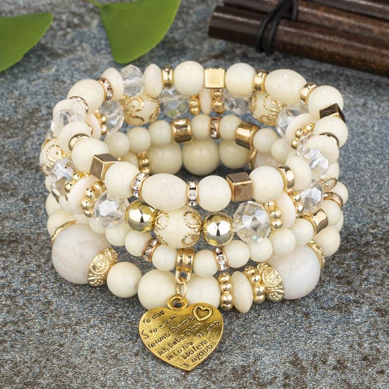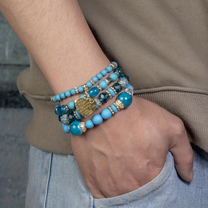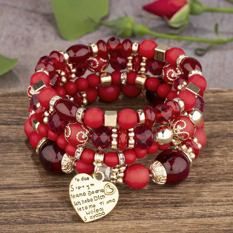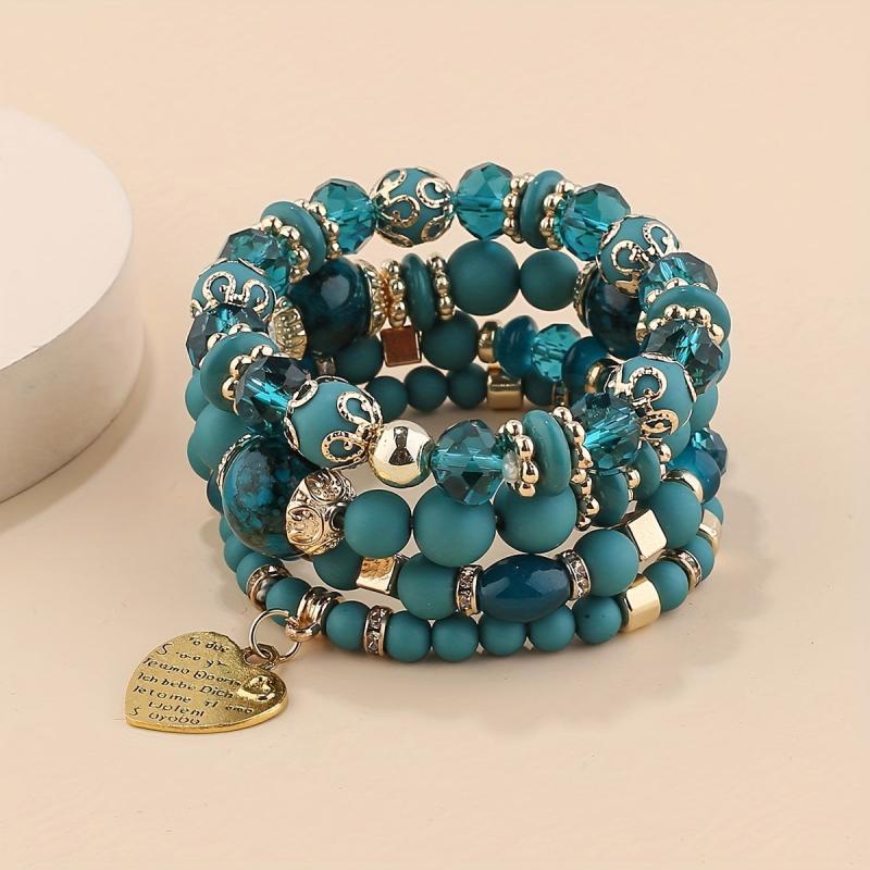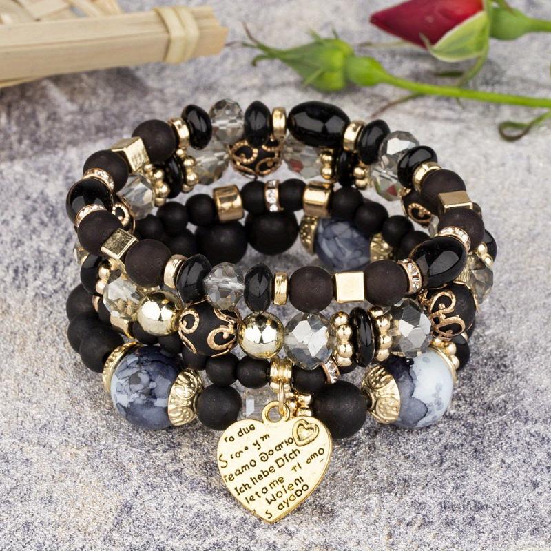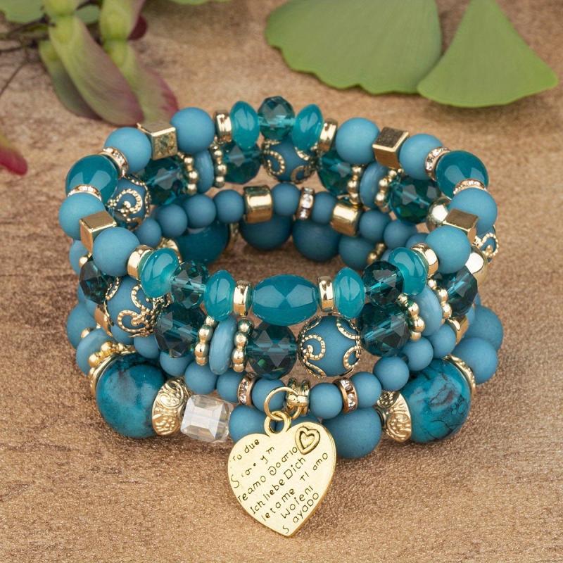 This Pompomia bracelet set features heart charm beads and a layered design. It makes a perfect vintage jewelry gift for your loved ones.
