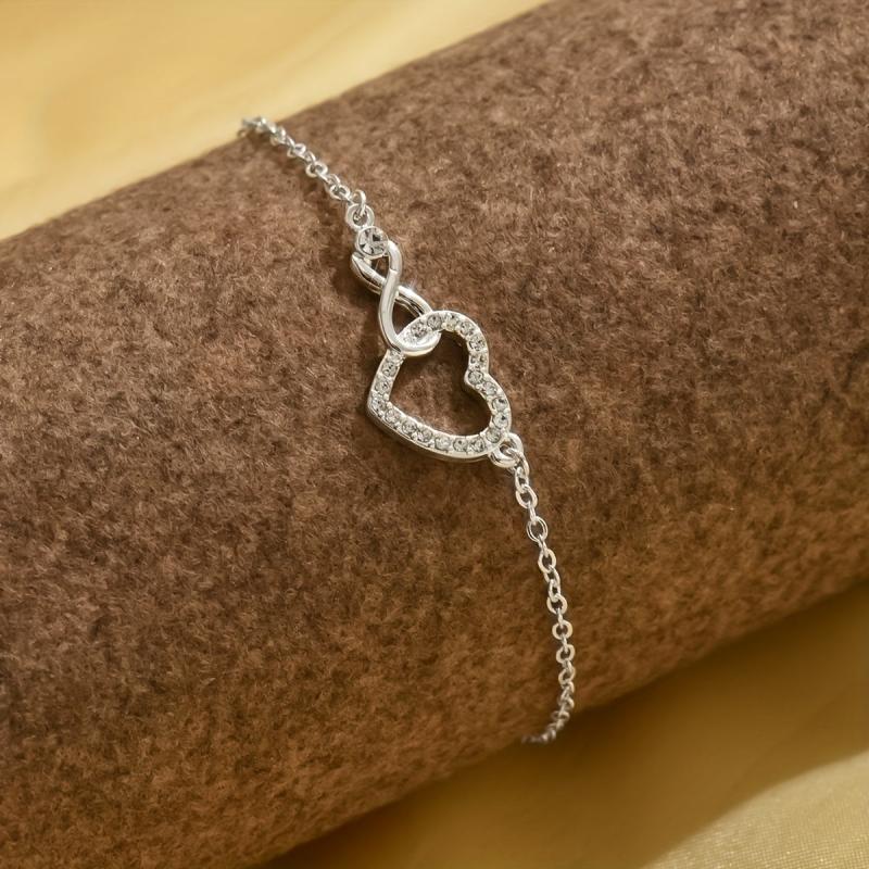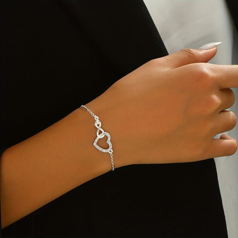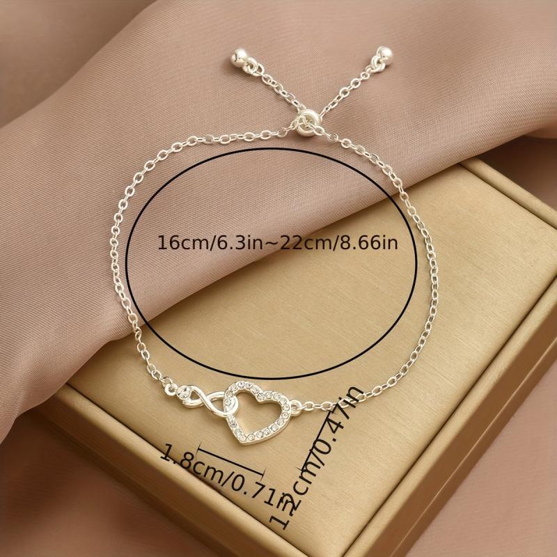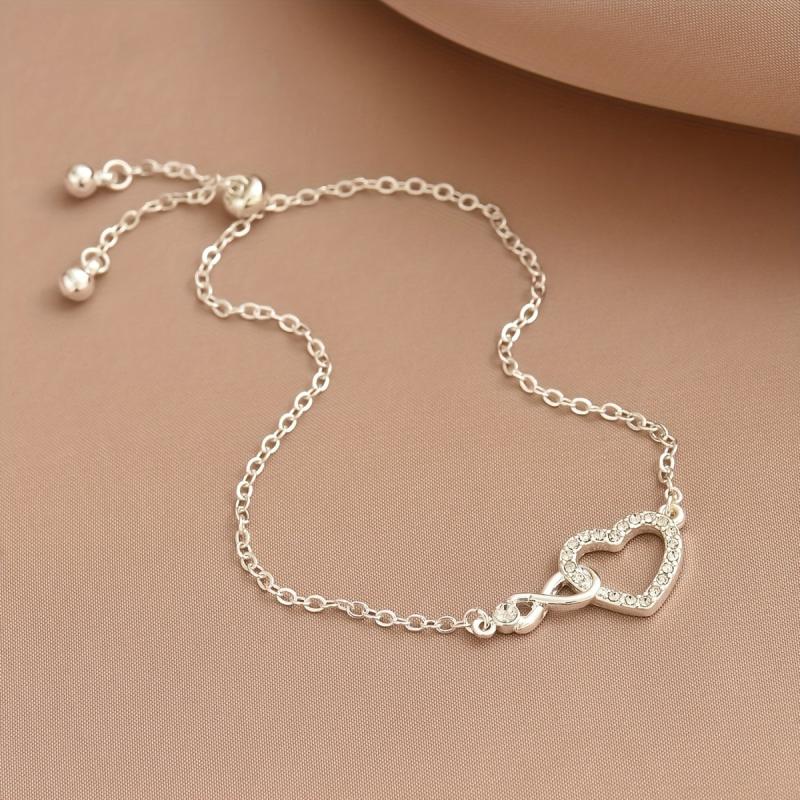 Elevate your wrist with this stylish women's bracelet featuring a heart and infinity symbol adorned with rhinestones. The adjustable design makes it perfect for Valentine's Day.