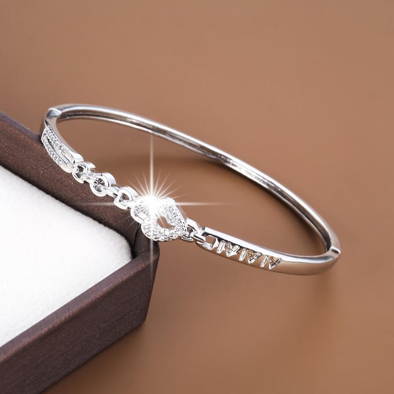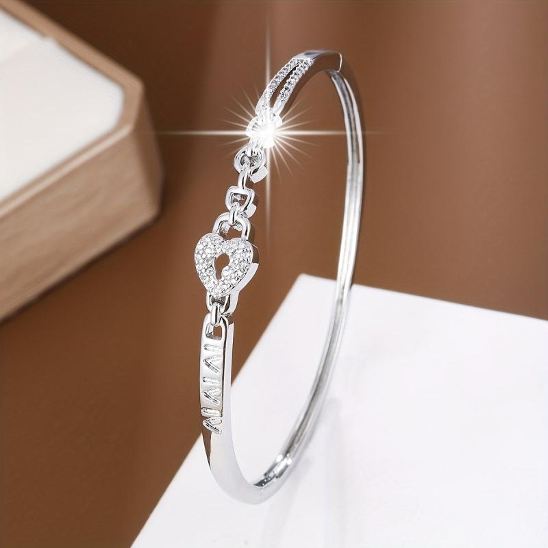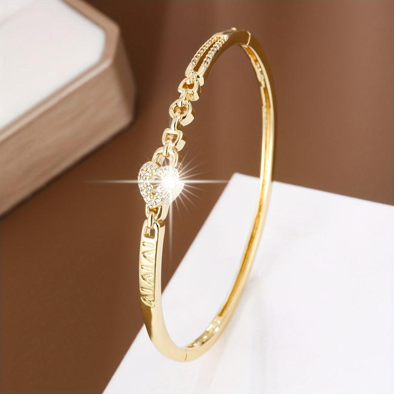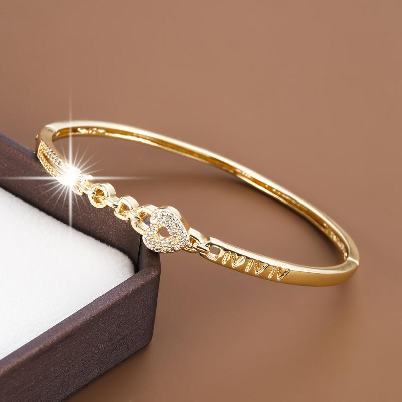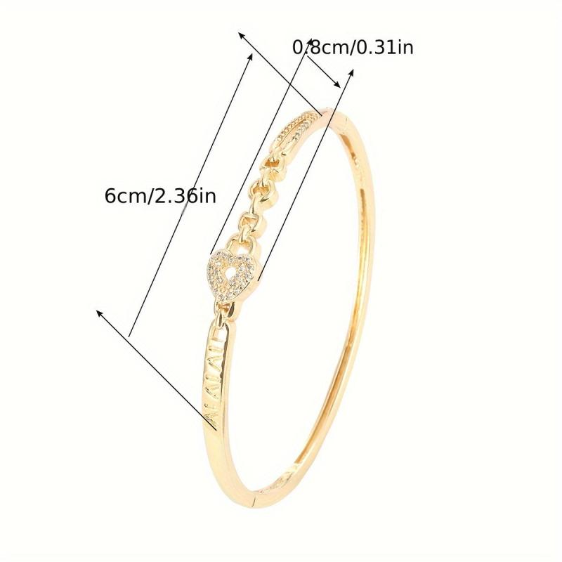 Add a touch of elegance to your casual attire with this minimalist bracelet featuring sparkling synthetic zirconia stones and a heart lock clasp. The golden plated finish adds a luxurious touch.