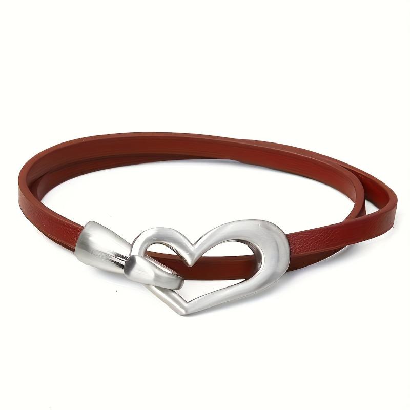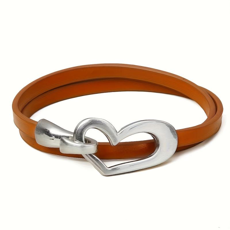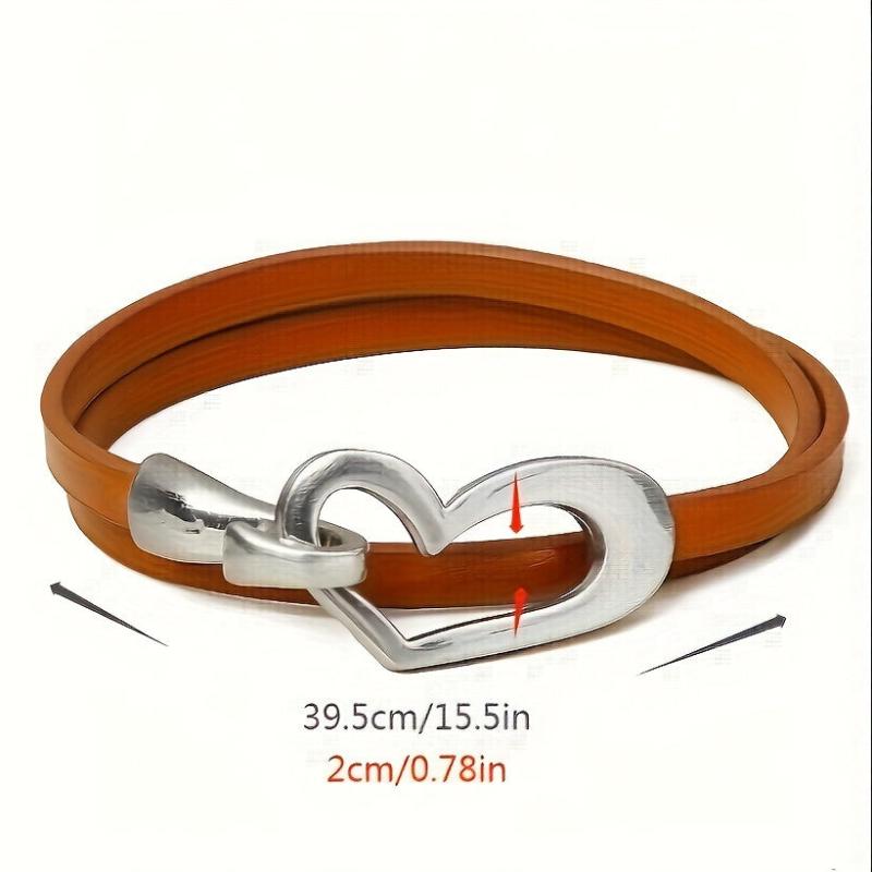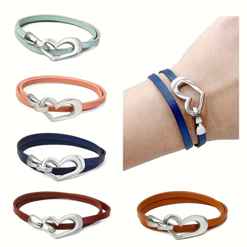 Heart Shaped Leather Wrap Bracelet Stackable Cuff Bangle
