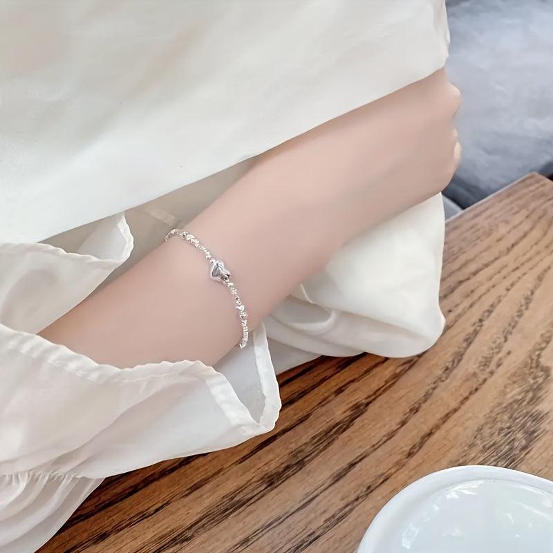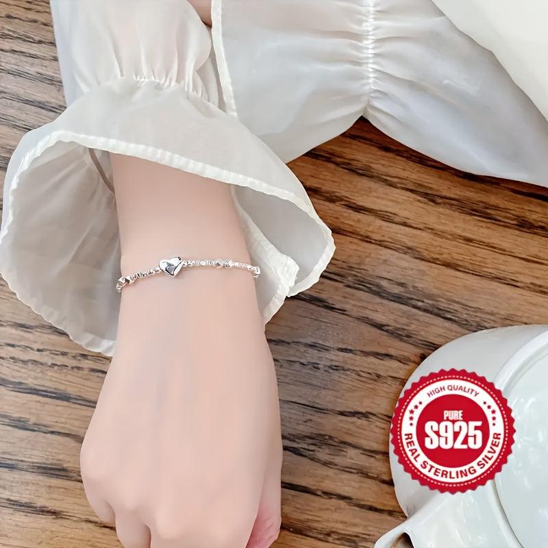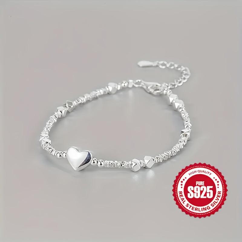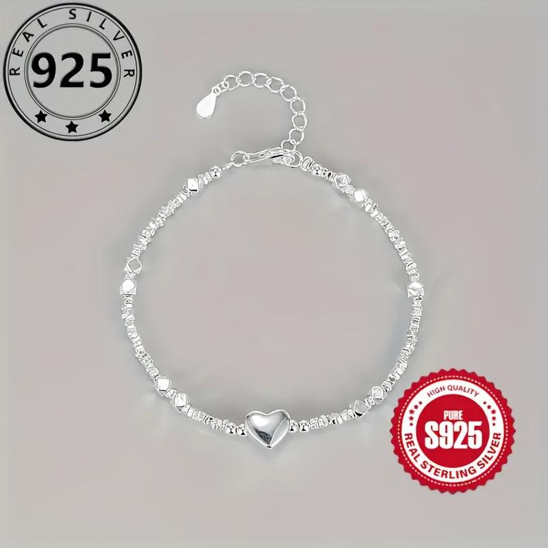 Elegant combination of a heart shaped S925 sterling silver bracelet and a stylish bead bracelet adorned with crushed silver accents.