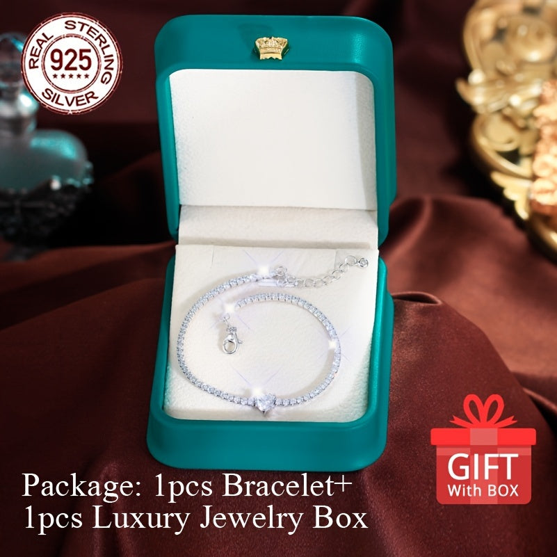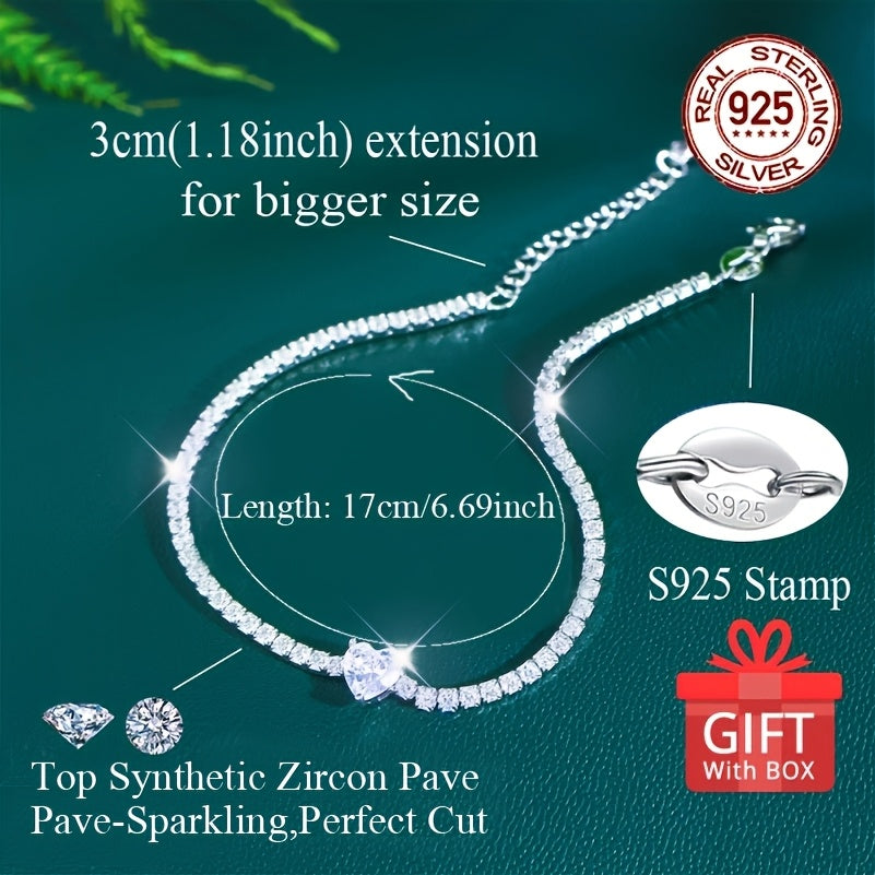 This stunning bracelet is made of high-quality 925 sterling silver and features a heart-shaped design with synthetic zirconia accents. It is the perfect accessory for any occasion.