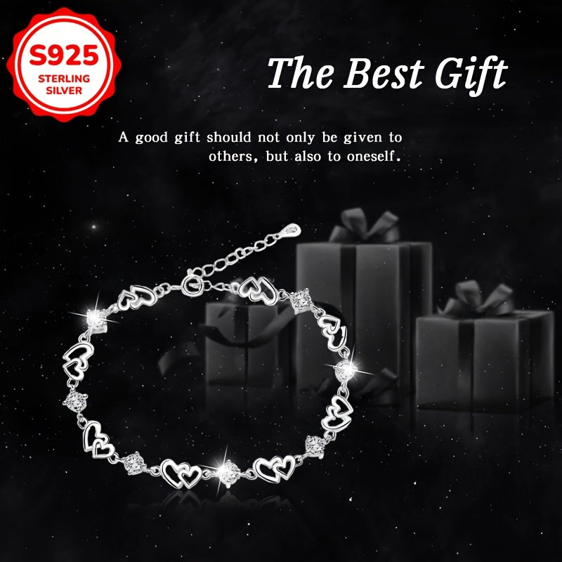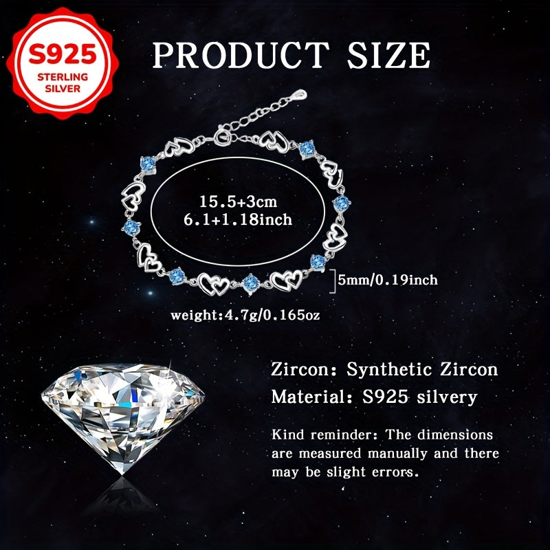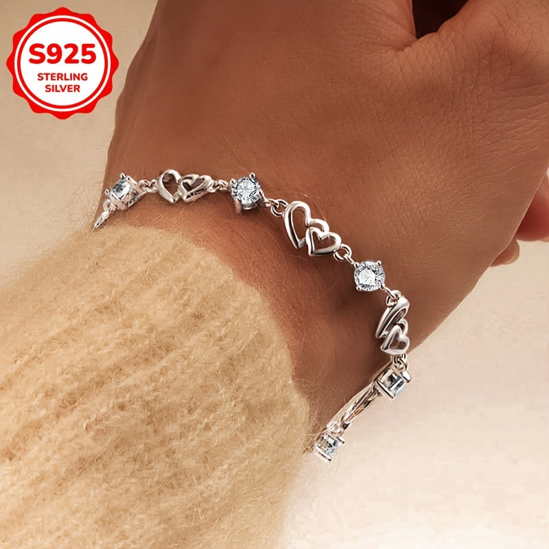 Elegant bracelet designed for women, featuring a delicate heart-shaped synthetic zirconia inlay. Weighs 4.7 grams, perfect for daily wear.