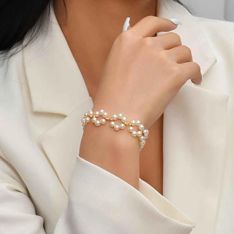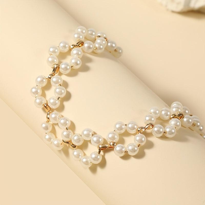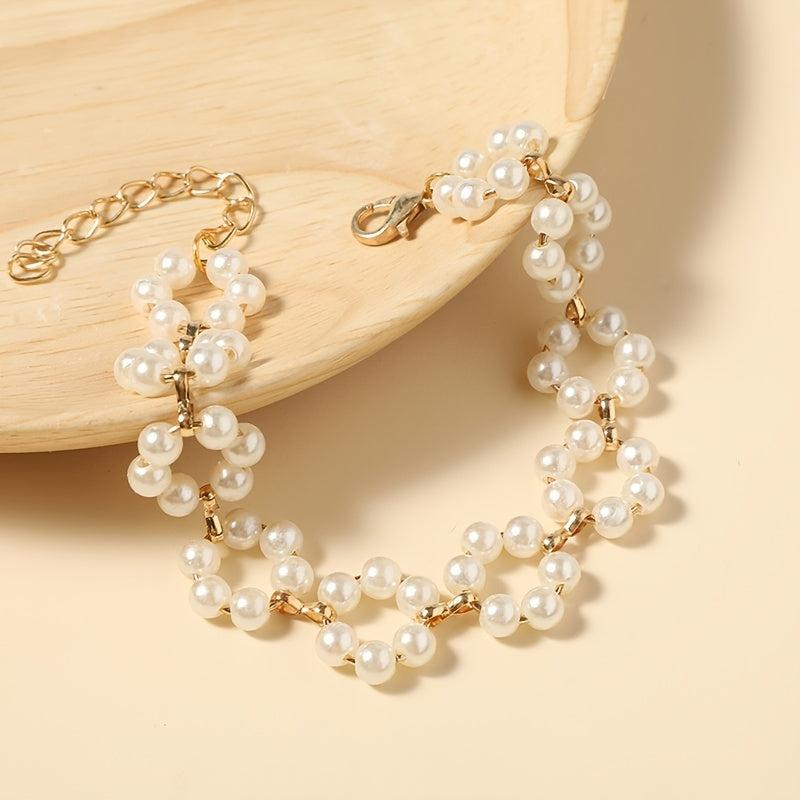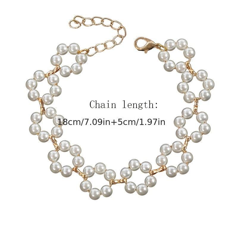 This stunning bracelet features a hollow flower design with faux pearls, perfect for adding a touch of elegance to your bridal or wedding outfit. It can also be worn as a daily clothing accessory.