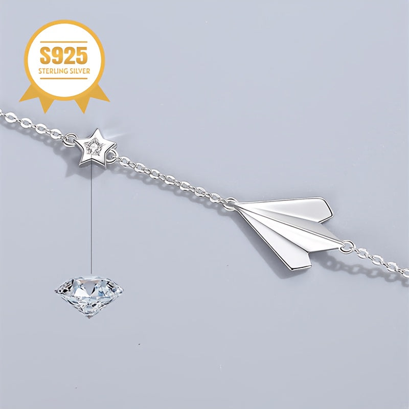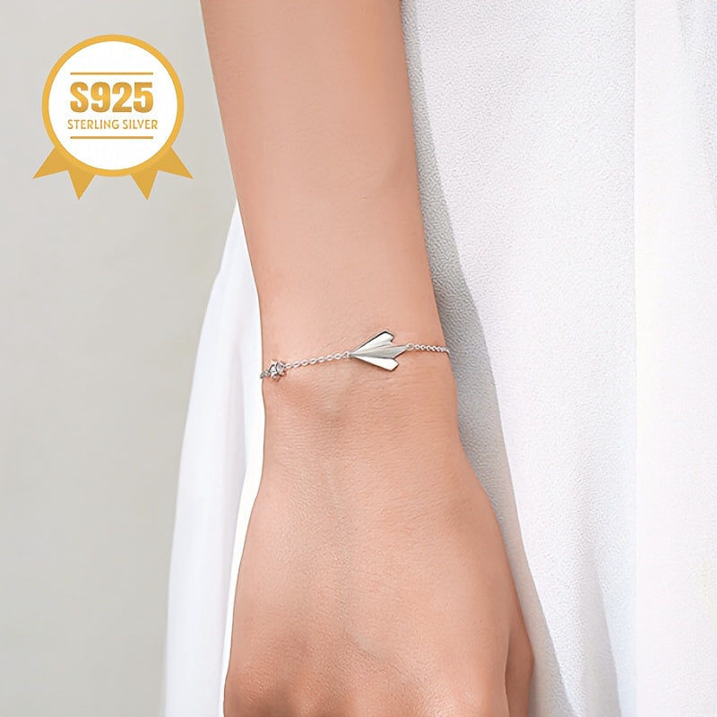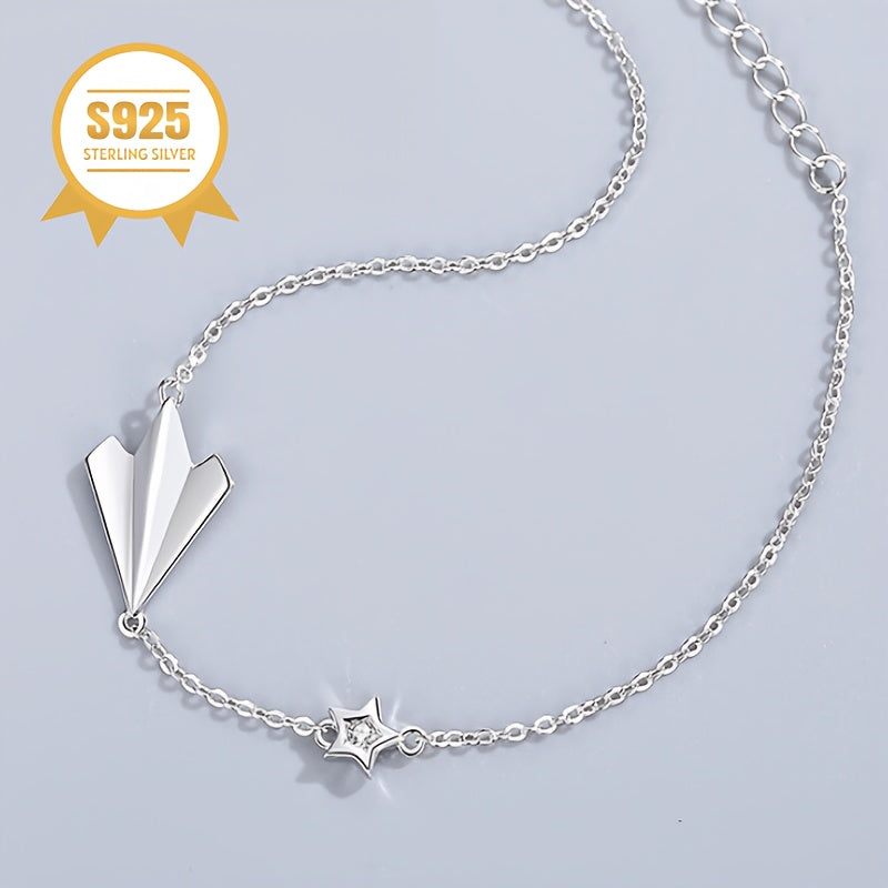 This delicate bracelet features a paper airplane and pentagram star design, perfect for a young woman. It is hypoallergenic, anti-oxidation, and makes a great gift for mothers or ladies.