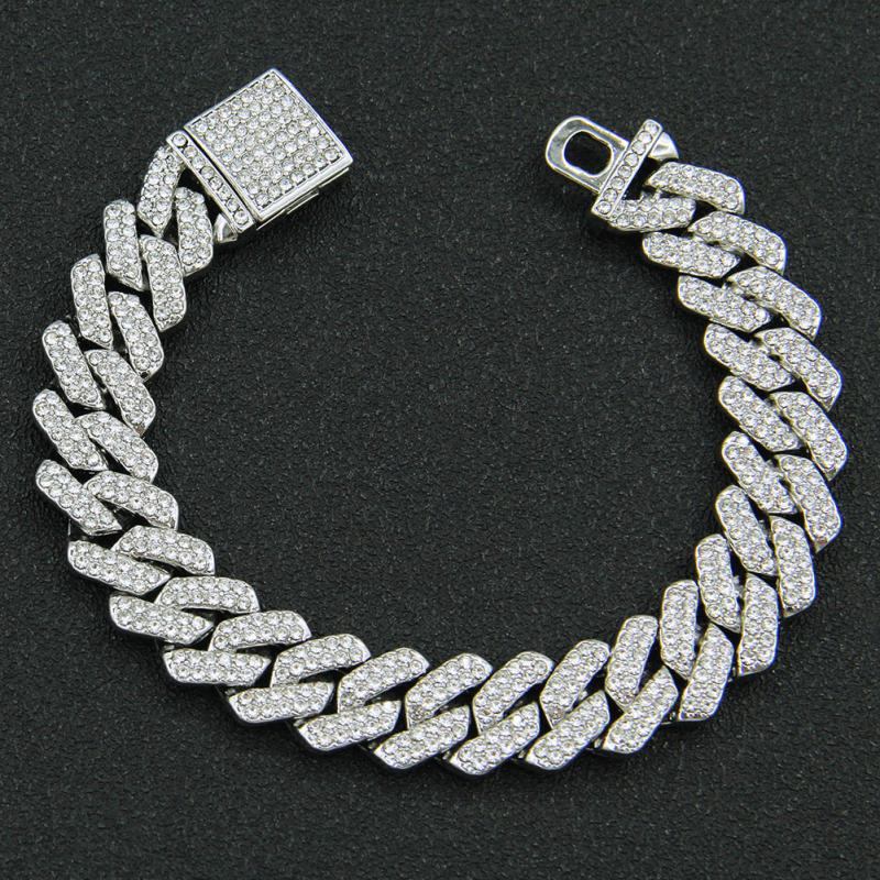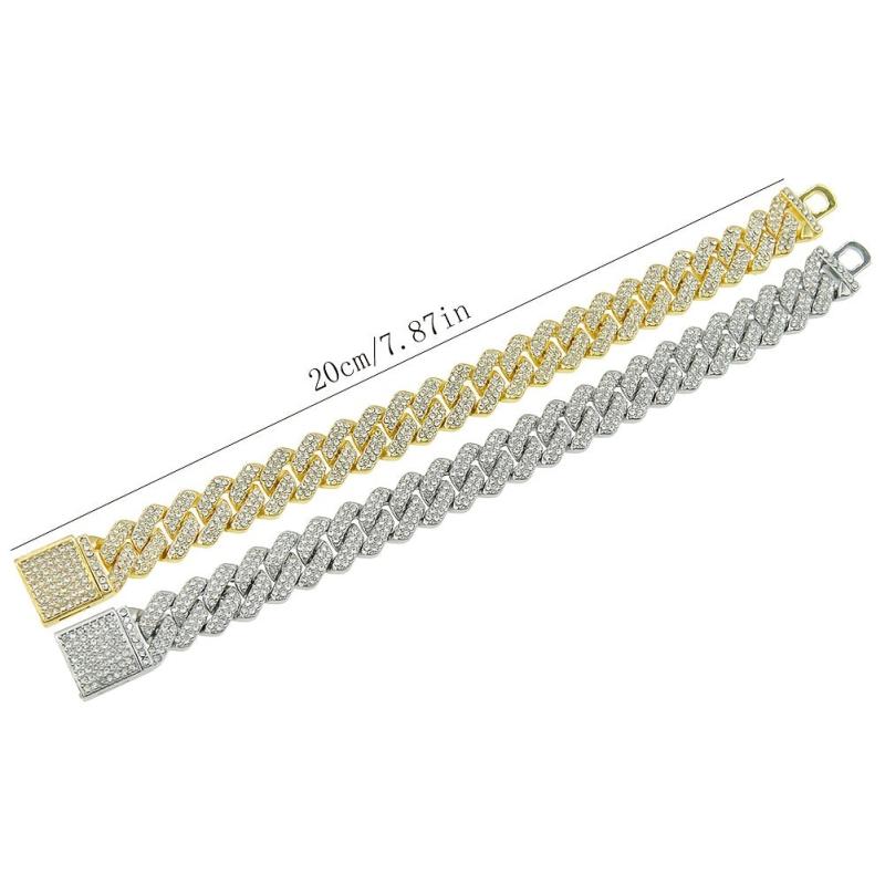 Make a bold statement with this hip hop Cuban link chain bracelet featuring sparkling rhinestone embellishments. Crafted from zinc alloy with an adjustable clasp, it's perfect for casual attire.