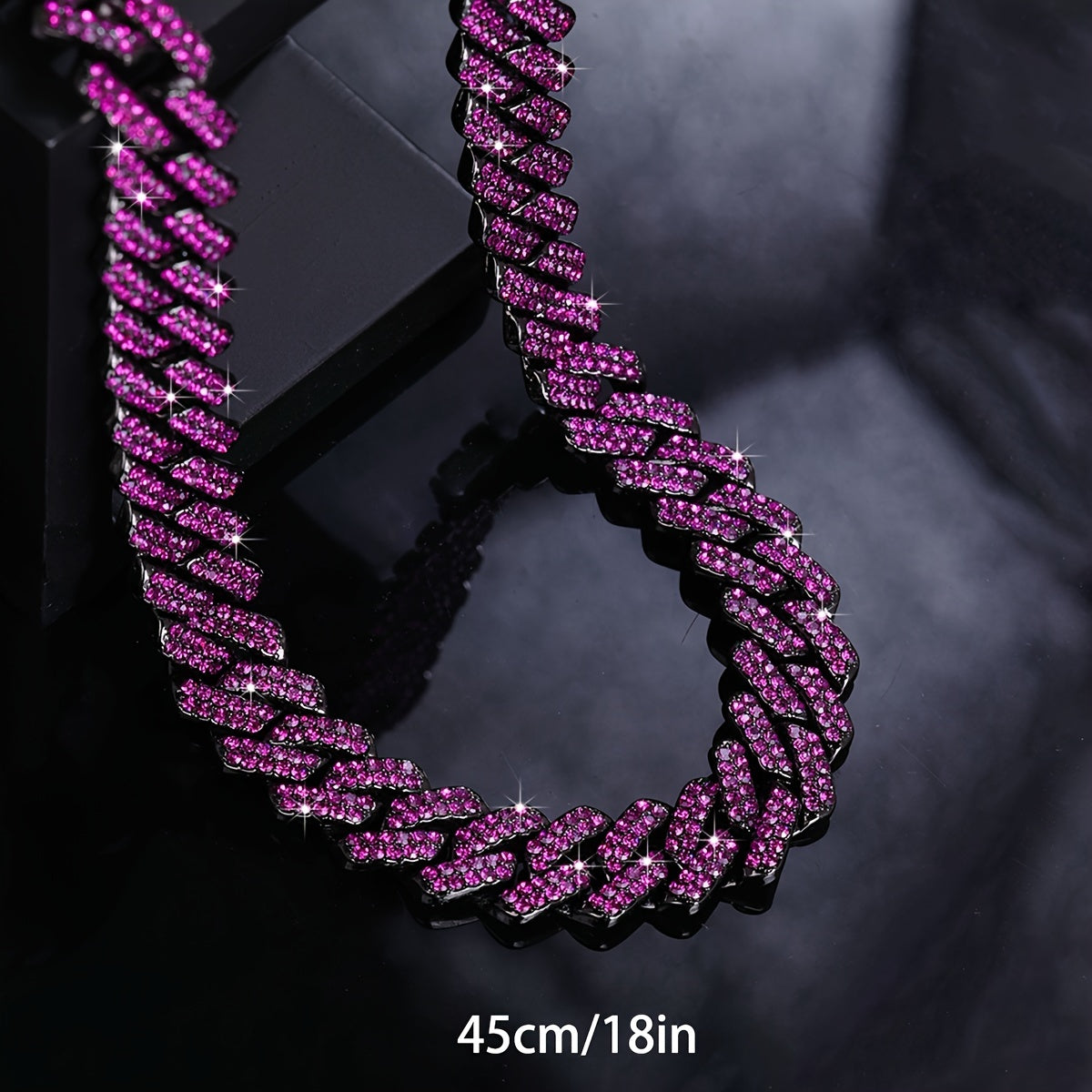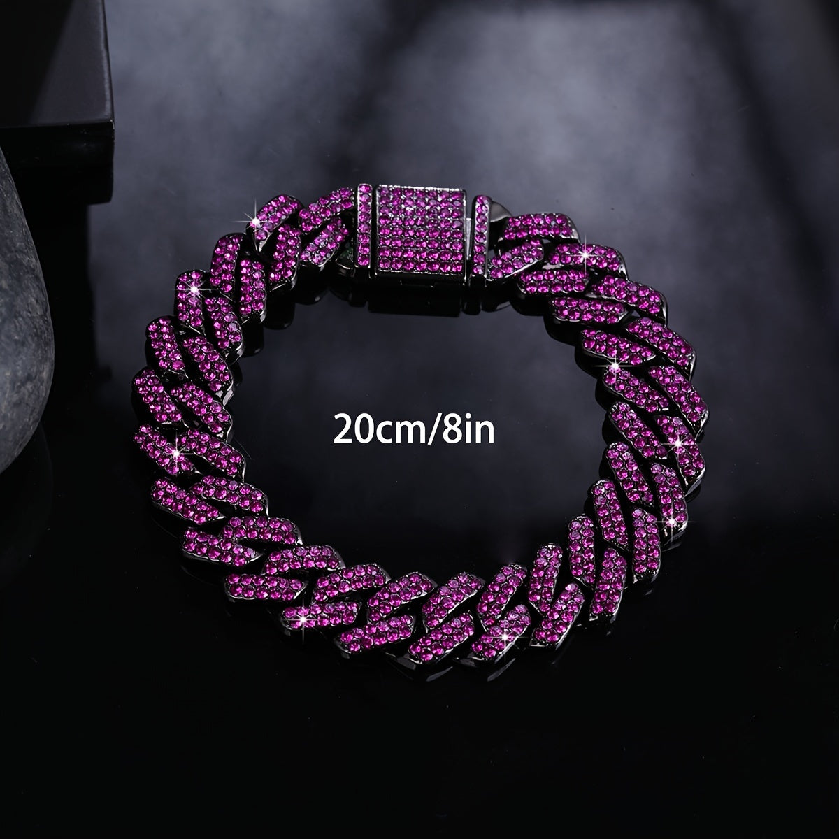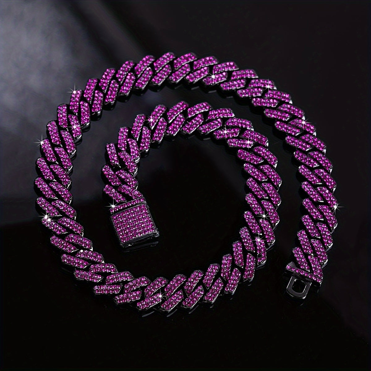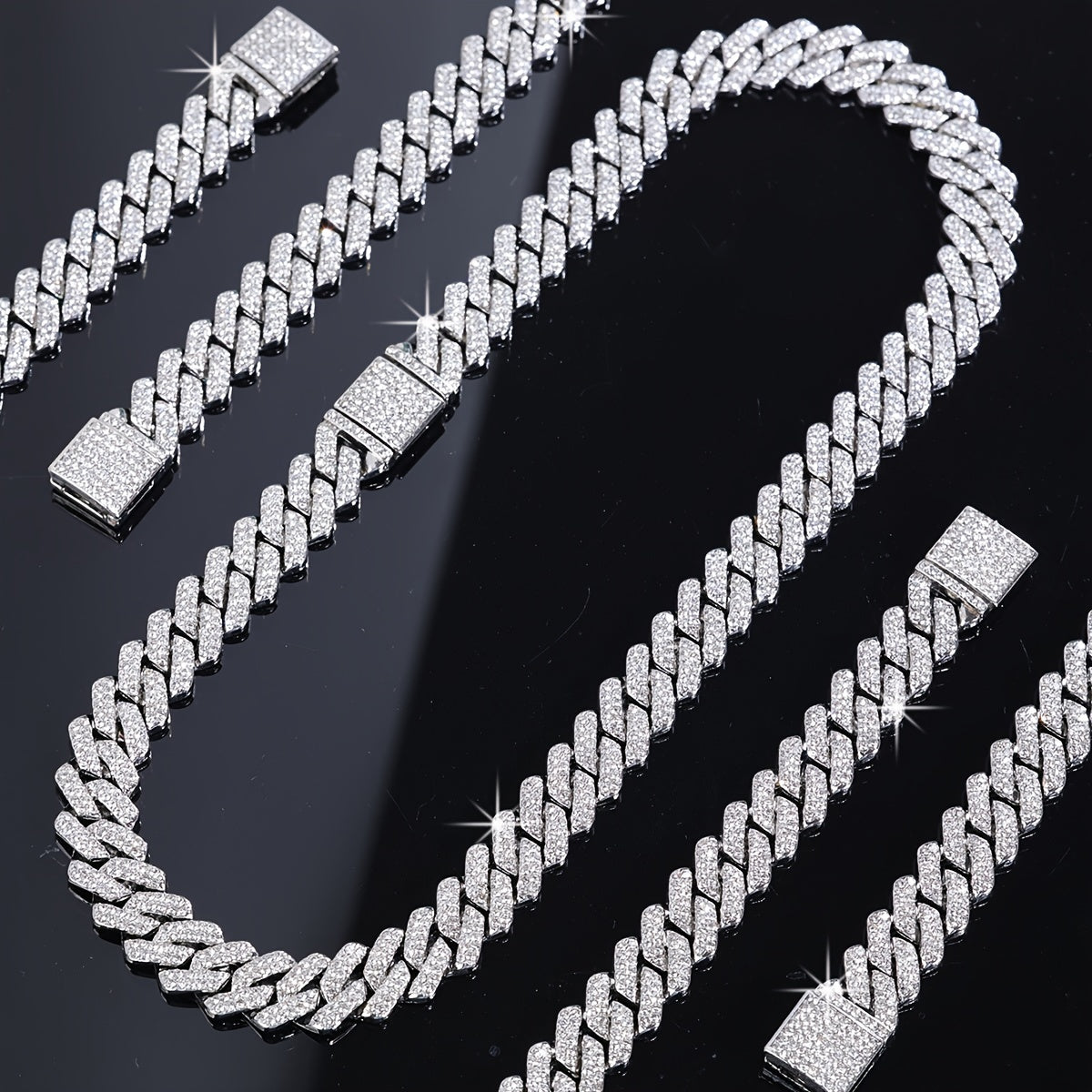 Elevate your style with this iced out rhinestone Cuban chain necklace and bracelet set. Perfect for men who love hip hop fashion.