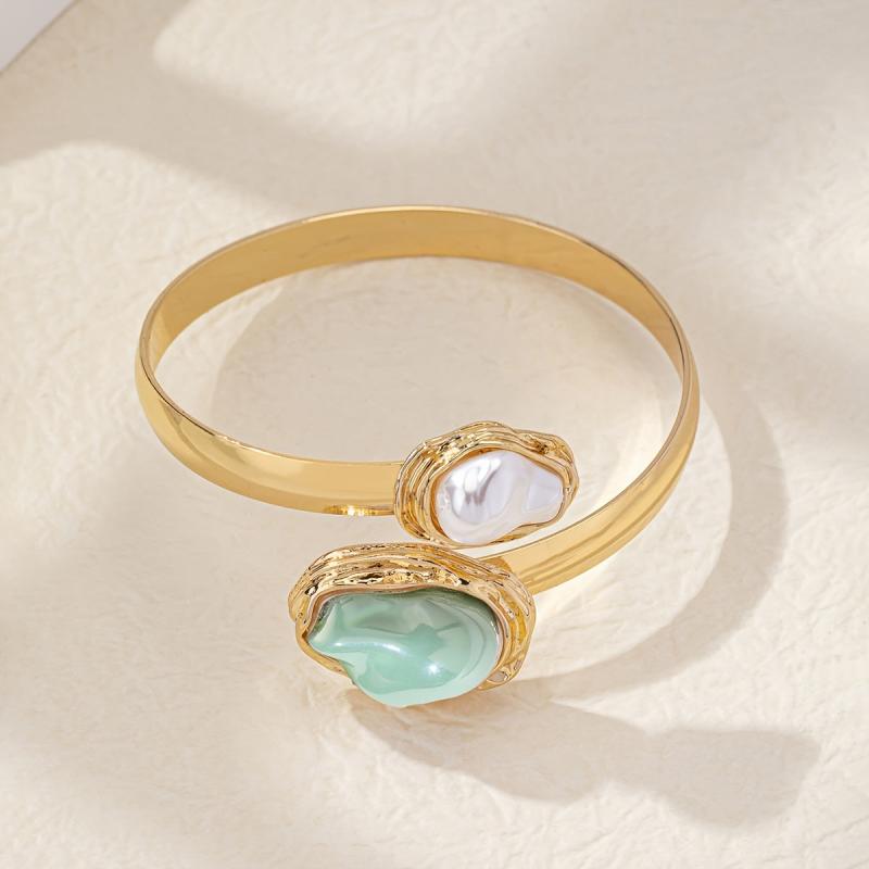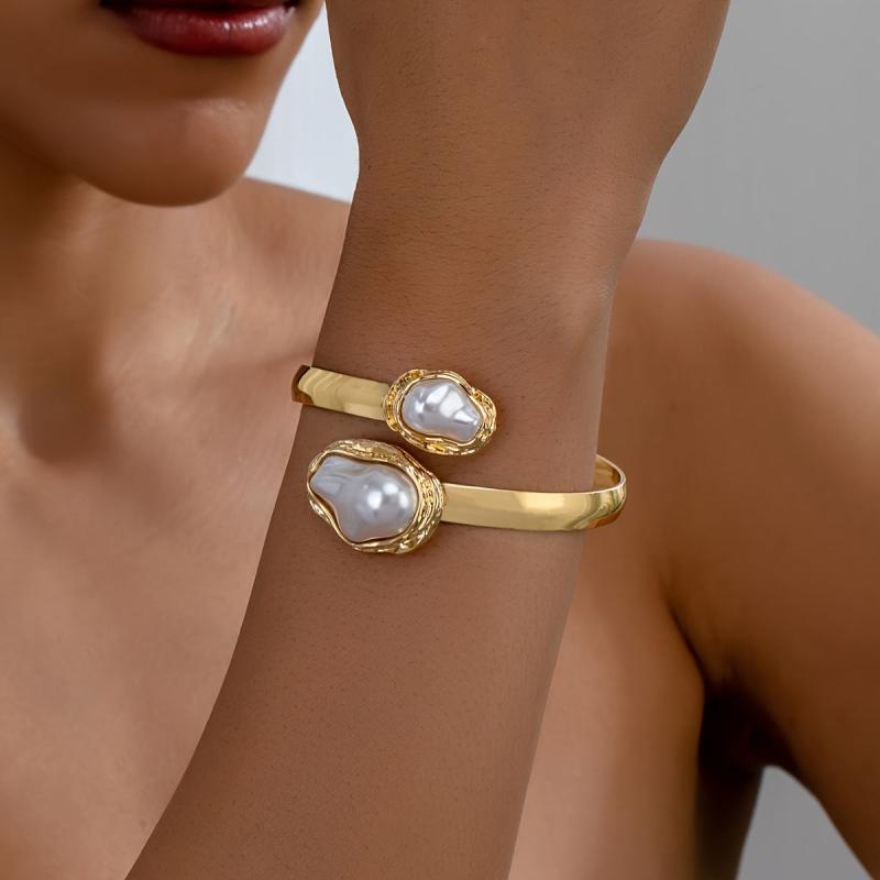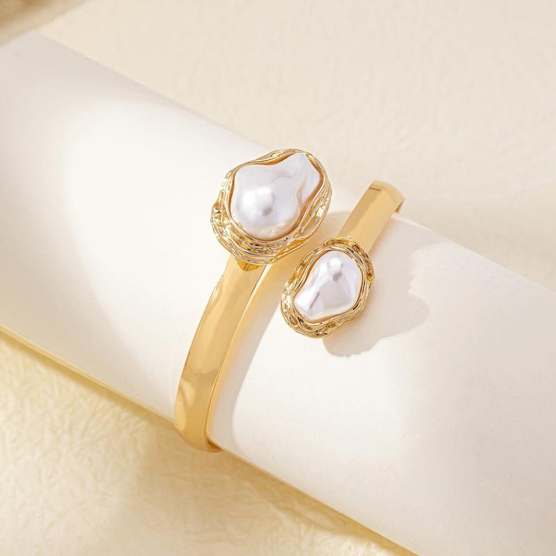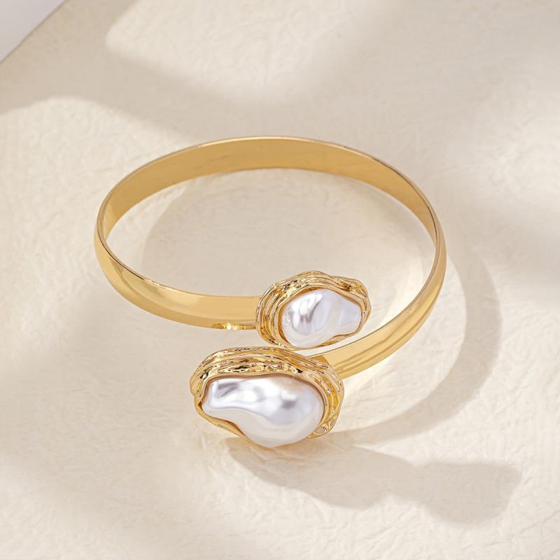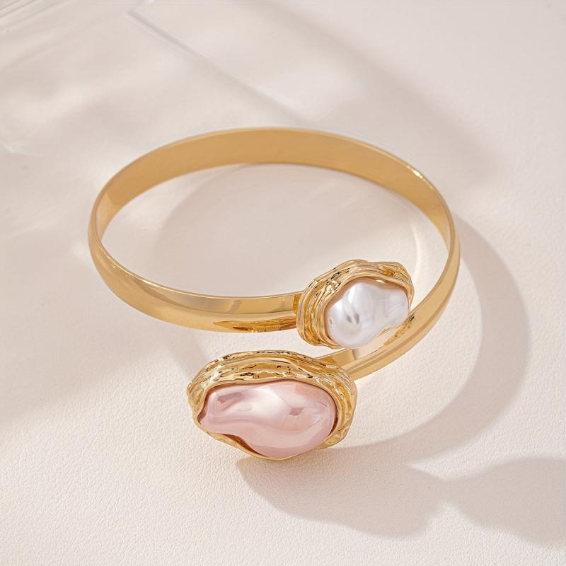 Elevate your everyday look with this European and American style faux pearl bracelet. The irregular shape and open cuff design make it a stylish accessory.