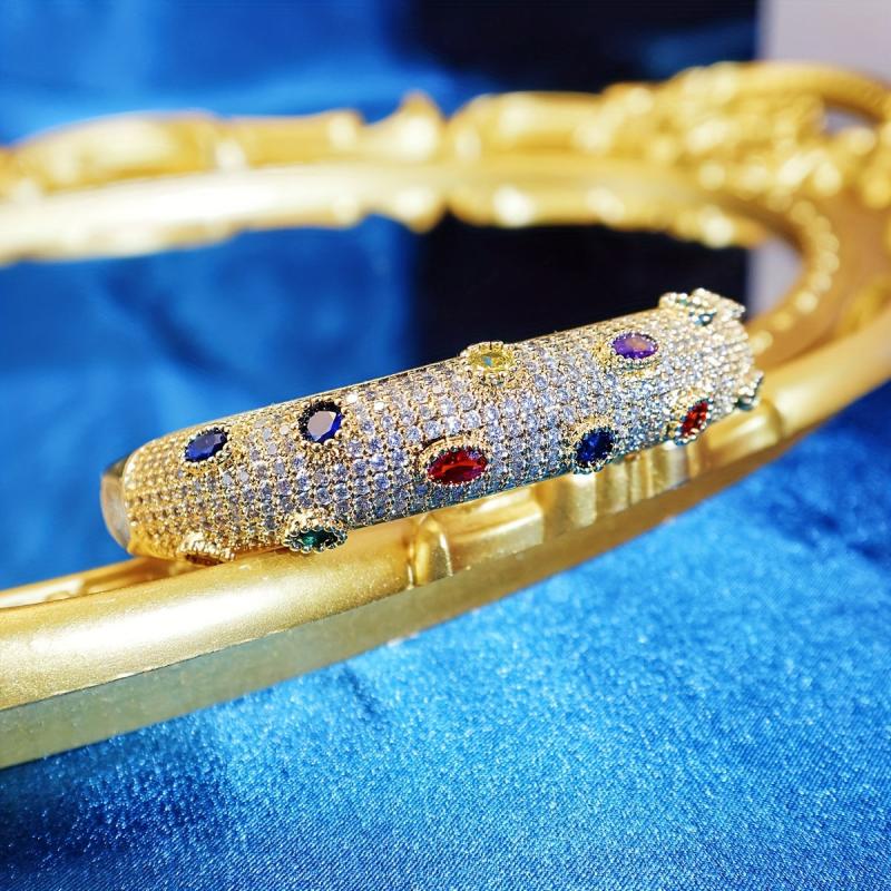 Elevate your evening look with this mysterious Italian style bracelet featuring multicolored synthetic zirconia set in luxurious gold-tone metal.