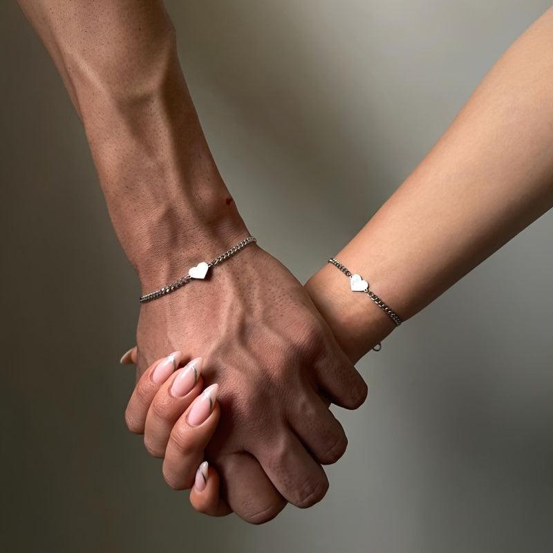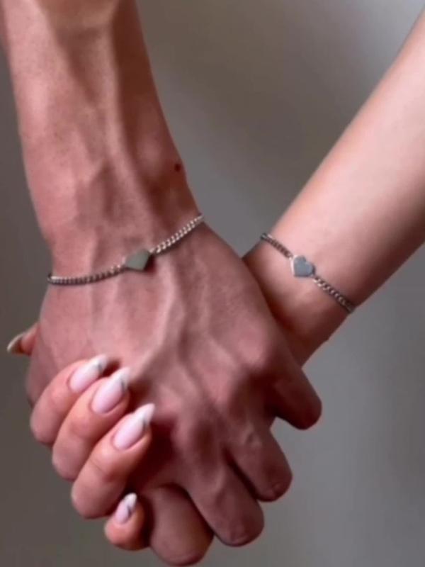 These minimalist Japanese love bracelets feature stainless steel strips for a sleek and stylish look. Perfect for couples to wear daily.