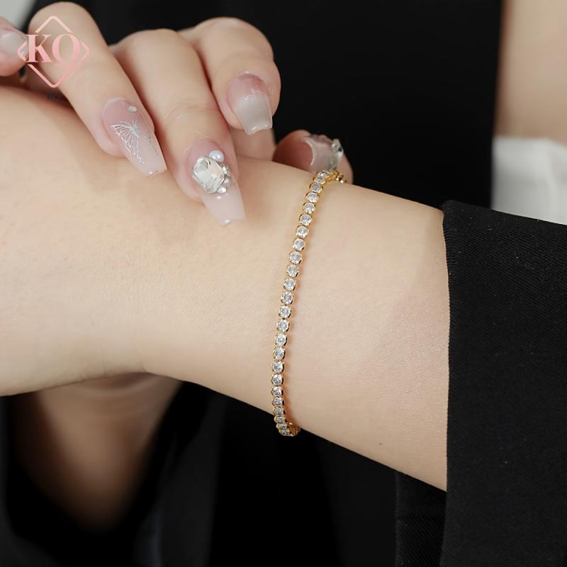 This stunning unisex bracelet is perfect for special occasions or everyday wear. Made with sparkling cubic zirconia accents and a durable golden plated design, it's a versatile accessory.