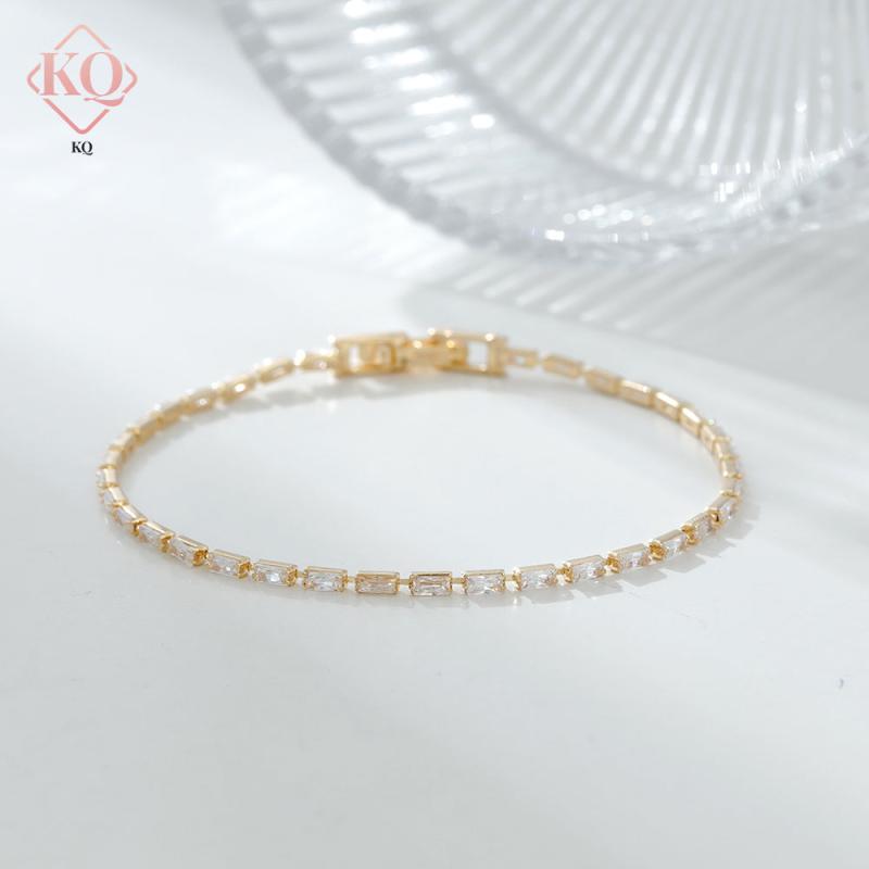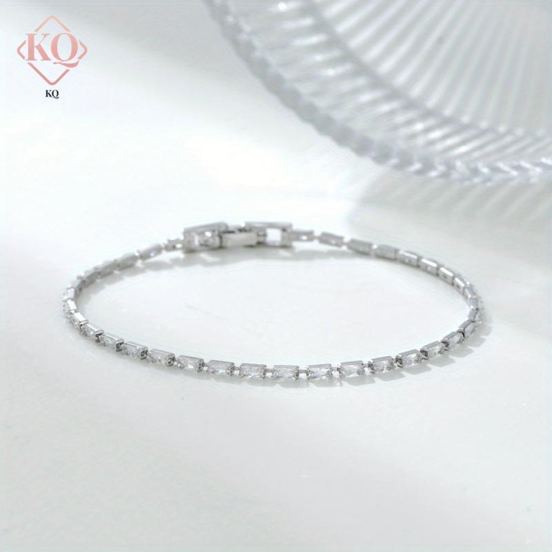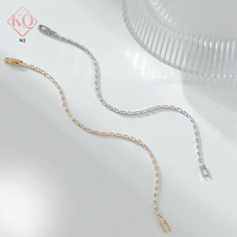 Elegant bracelet featuring rectangular Cubic Zirconia in four prong setting. Suitable for both men and women.