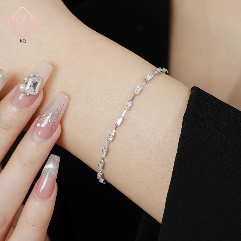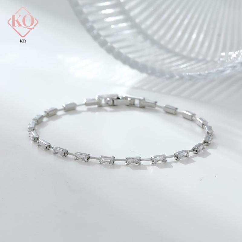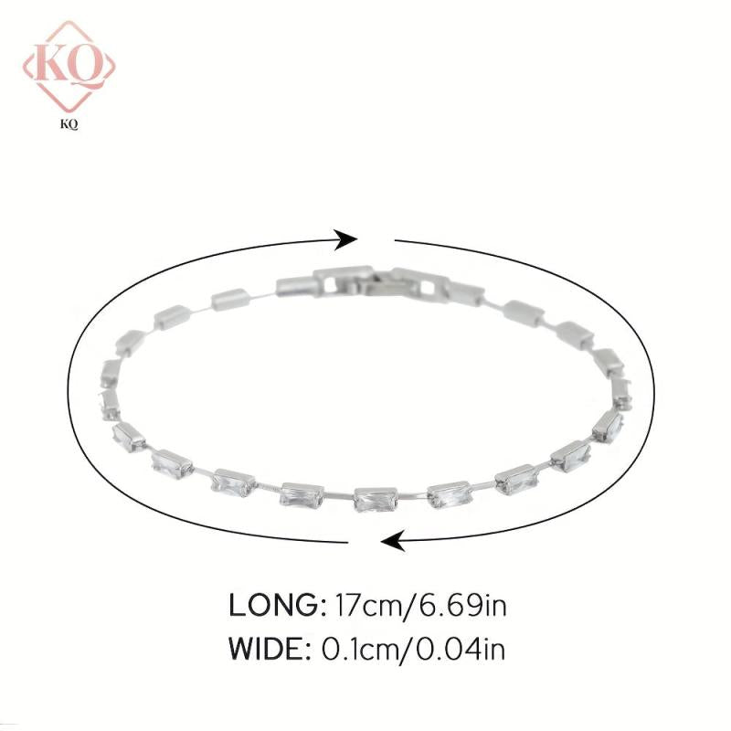 Elegant KQ crystal bracelet with silvery edge, plated copper material, perfect for both men and women. Ideal for Valentine's, graduation, anniversaries.