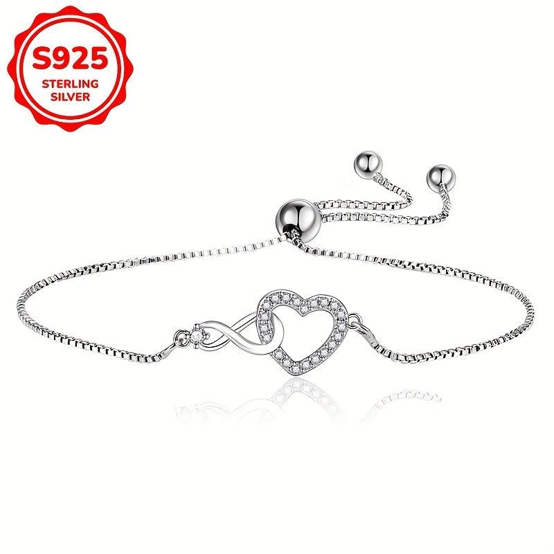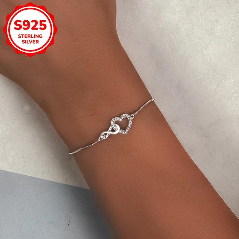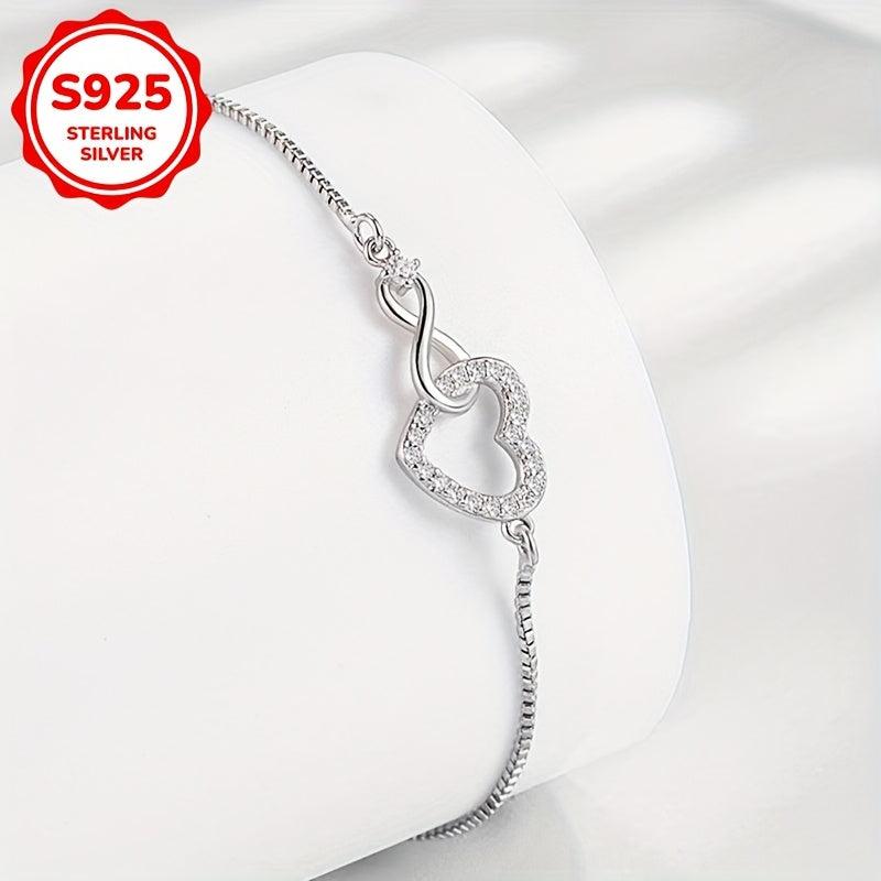 This creative bracelet features an infinite eight heart design with synthetic zirconia inlays. Made of 925 silver, this lightweight bracelet is perfect for daily wear and makes a great gift for Mother's Day, Spring, or Summer.
