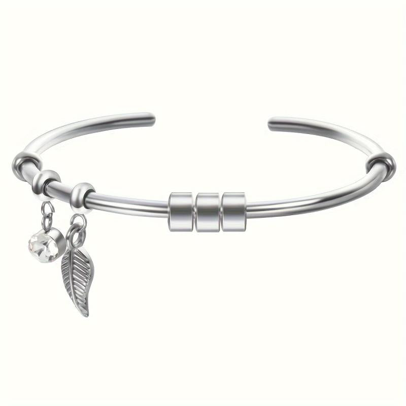 Get this elegant leaf-shaped bangle customized with names for a unique gift. Made of durable and hypoallergenic stainless steel, adjustable for a perfect fit.