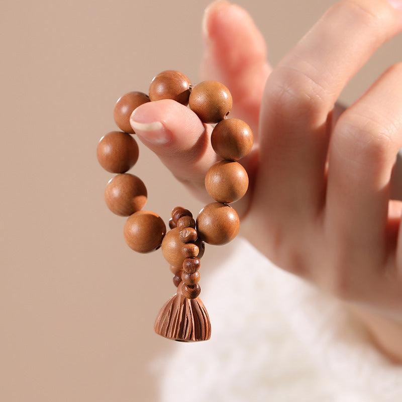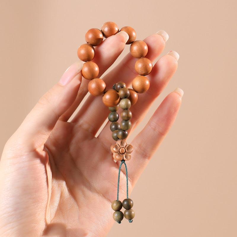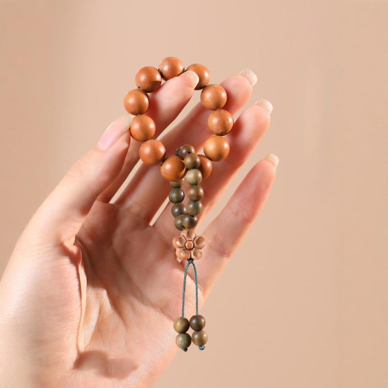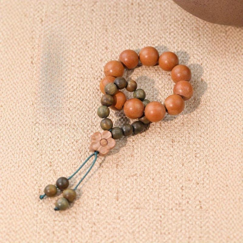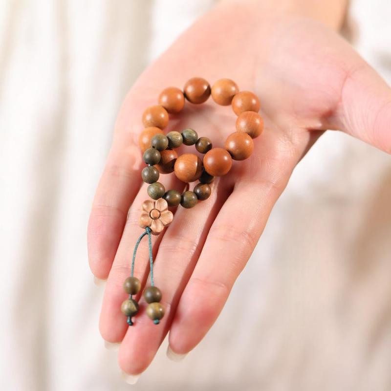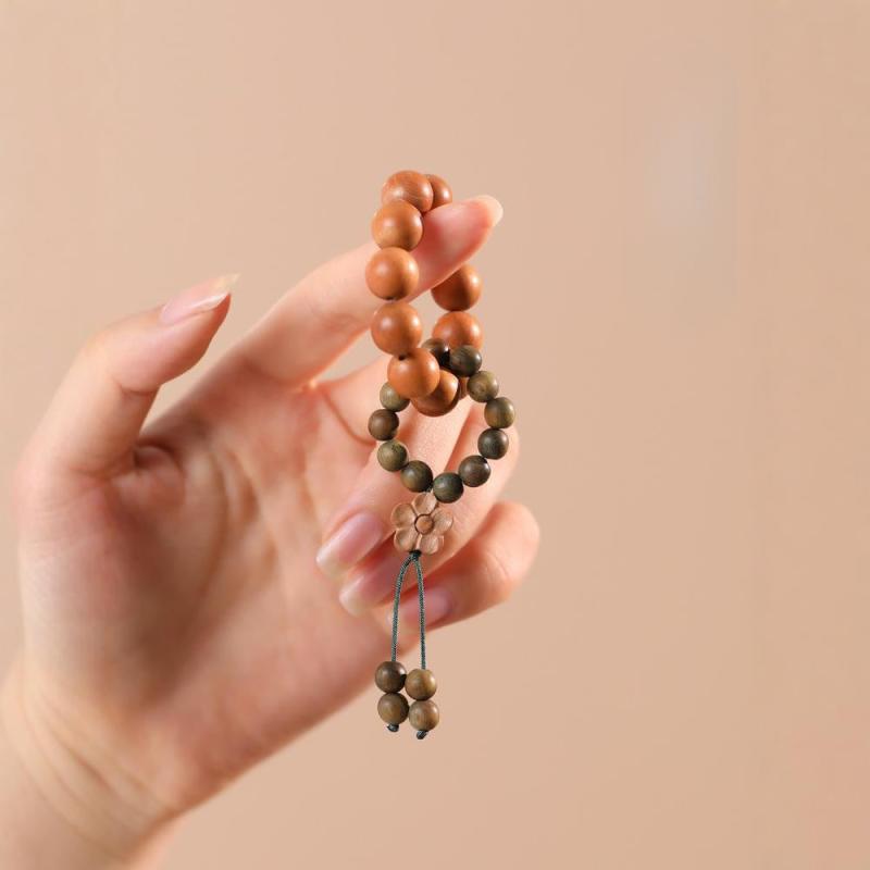 This small hand toy bracelet is perfect for those seeking a pliable and stylish accessory. It features Buddha beads and is ideal for handheld prayer.