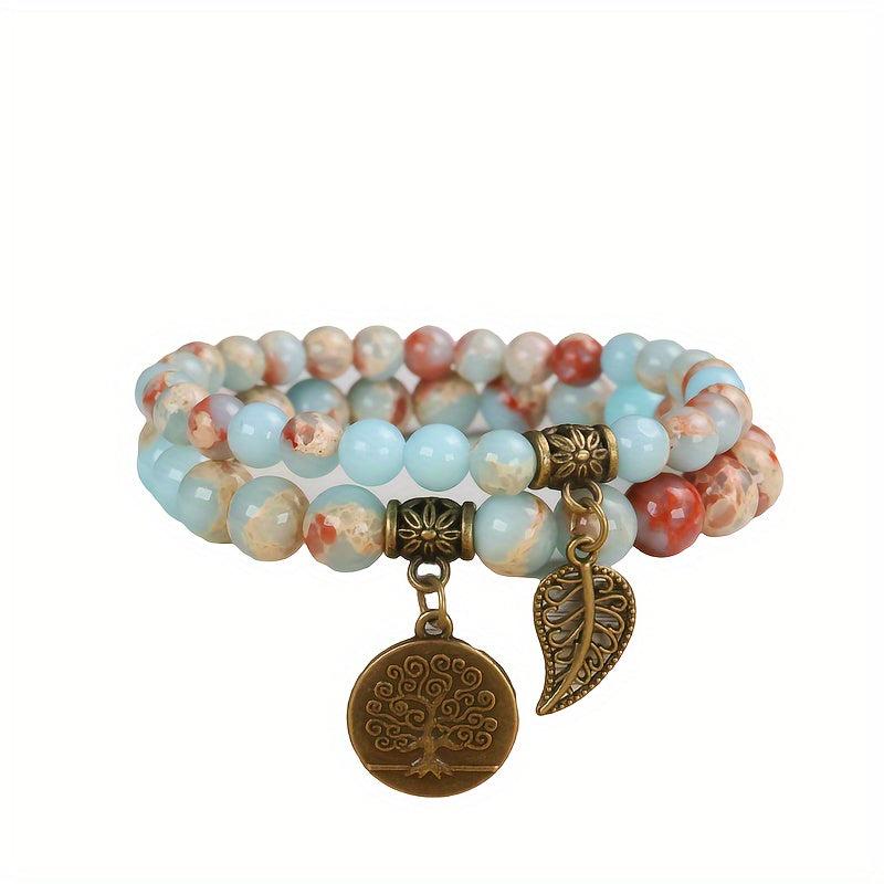 Life Tree & Leaf Charms Bracelets for Women, Beaded Jewelry for Stress Relief