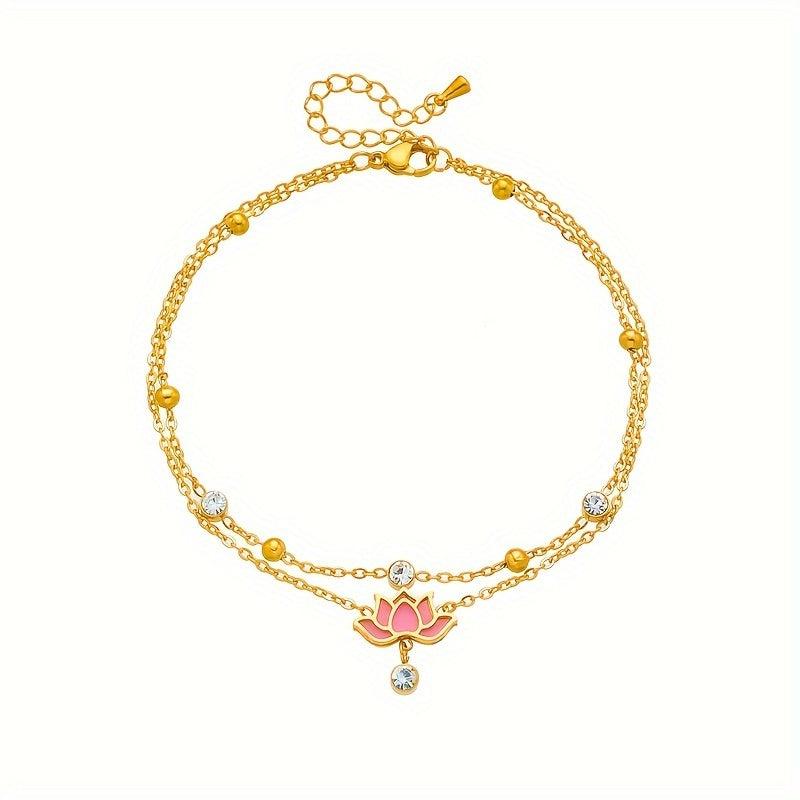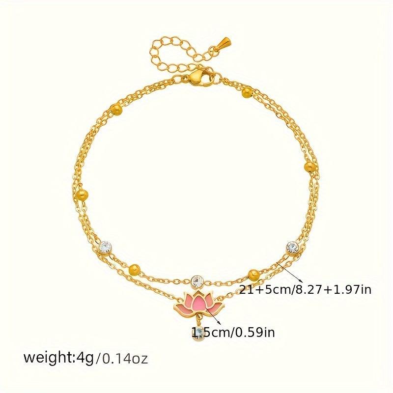 Elegant and versatile, this double layer stainless steel bracelet features a lotus pendant with sparkling cubic zirconia accents. Ideal for parties and casual wear.