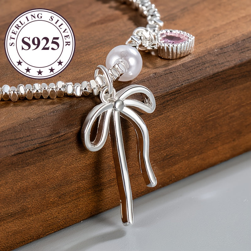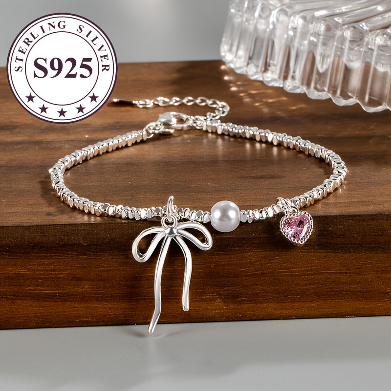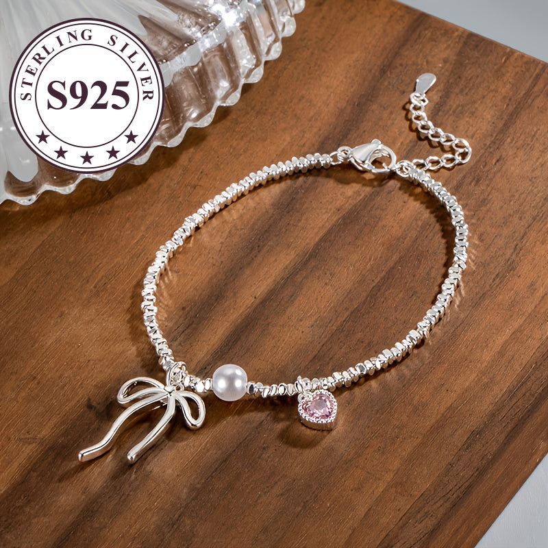 Low Allergy Bowknot Pink Zirconia Bracelet for Women