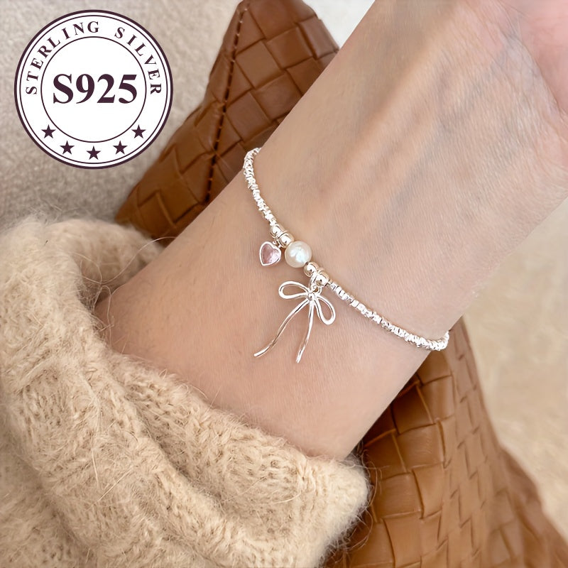 This elegant bracelet is crafted with pink zirconia stones and a crushed silver bangle, making it a perfect gift for Valentine's Day or Mother's Day. Comes in an anti-oxidation box.