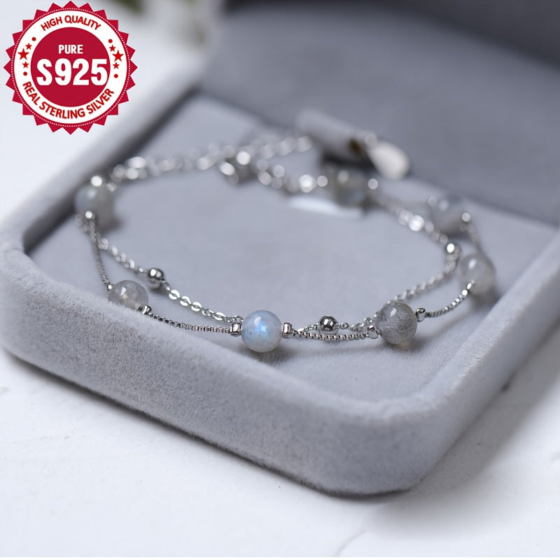 This elegant bracelet features a double layer design with gemstones, perfect for all occasions. The hypoallergenic material ensures a comfortable wear. Comes in a stylish anti-oxidation gift box.