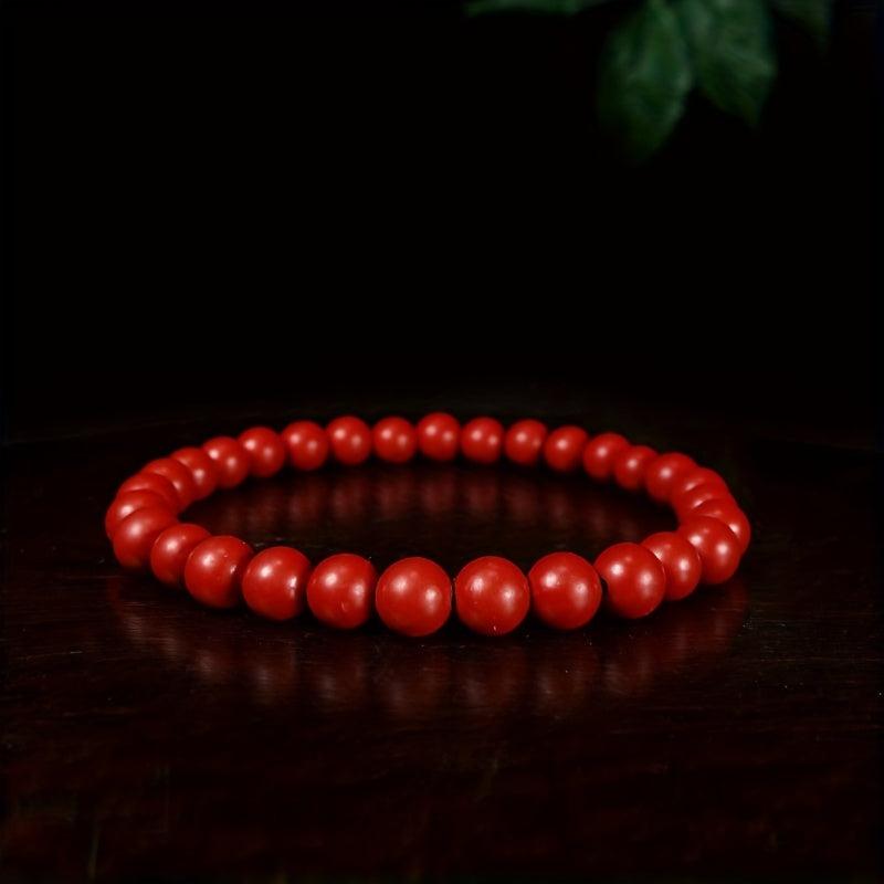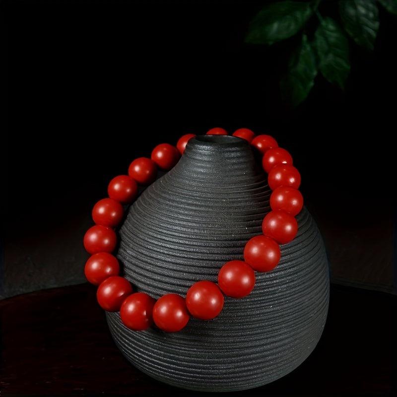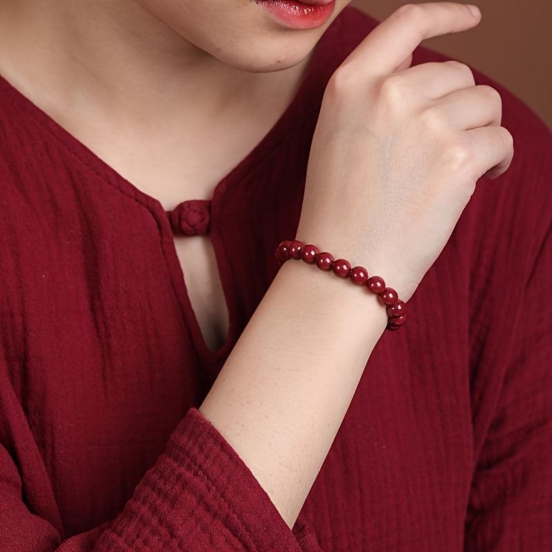 Enhance your style with this ethnic-inspired cinnabar beaded bracelet that brings good fortune. A perfect accessory for women.