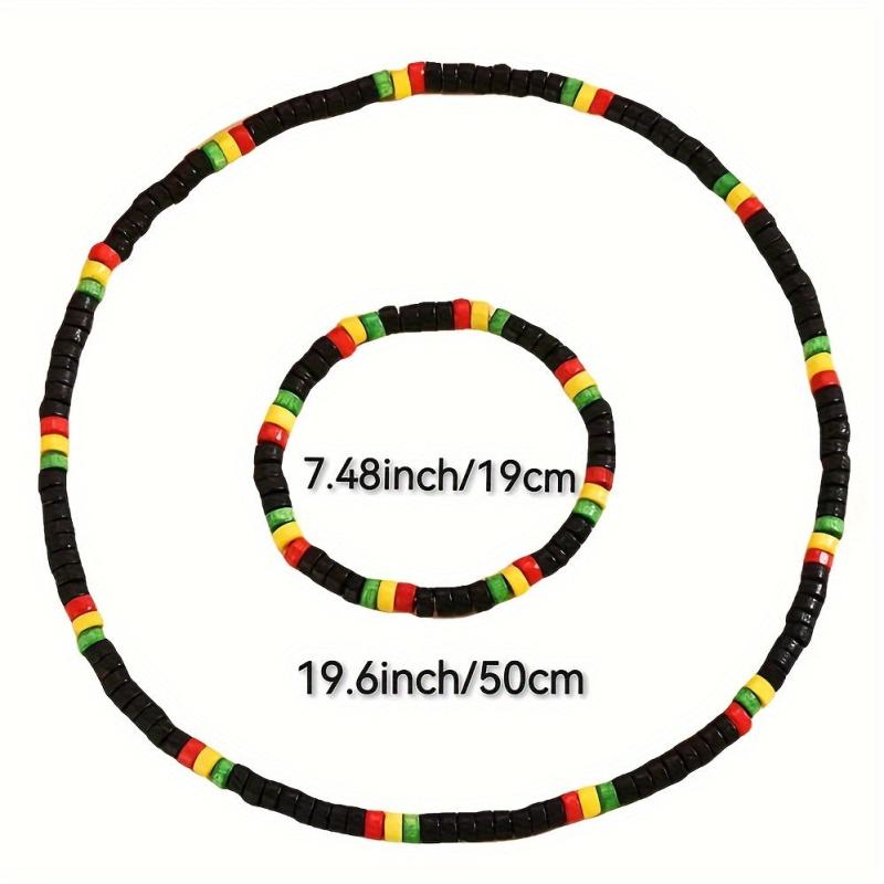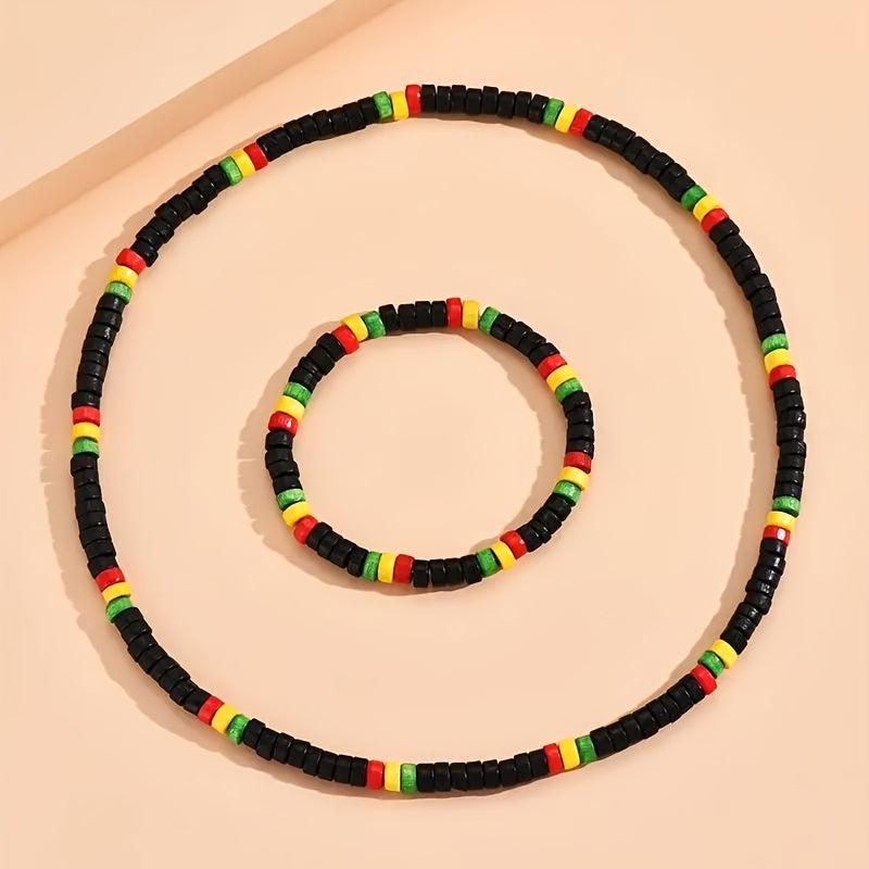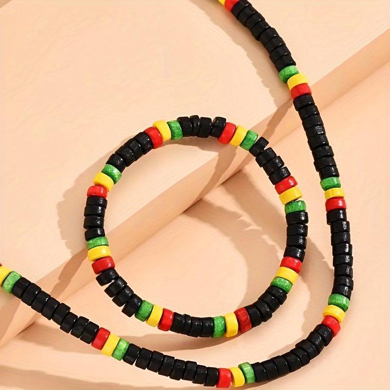 Enhance your style with this 2-piece bohemian set featuring vibrant wooden beads. Perfect for a casual look or to add a pop of color.