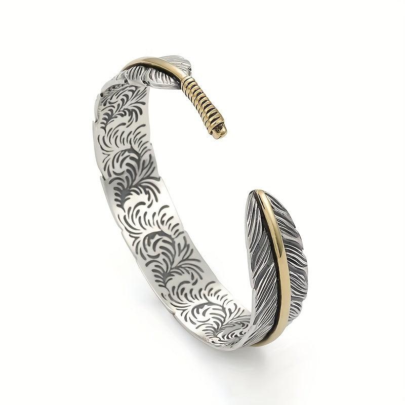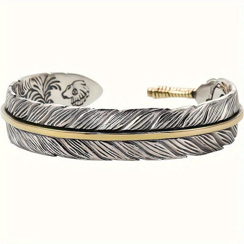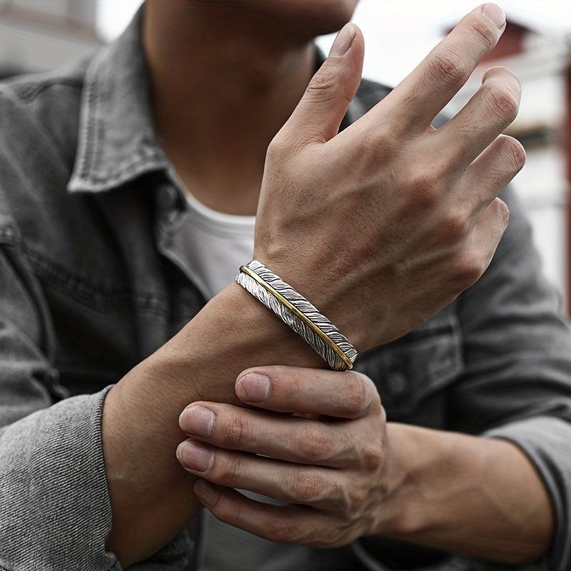 Upgrade your style with this classic feather pattern bracelet for men. Available in two colors, this bracelet is a timeless accessory.