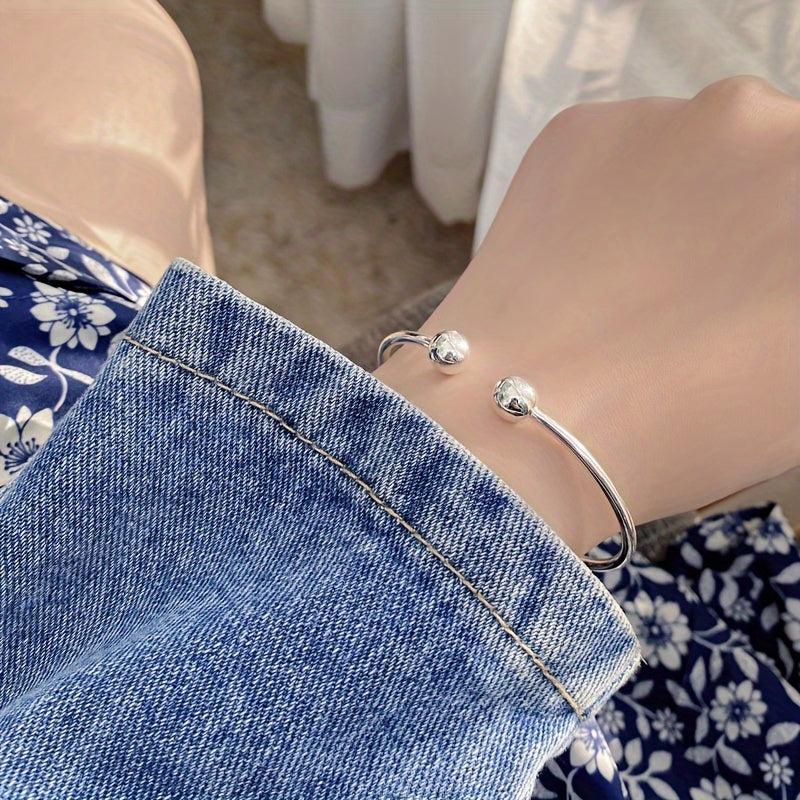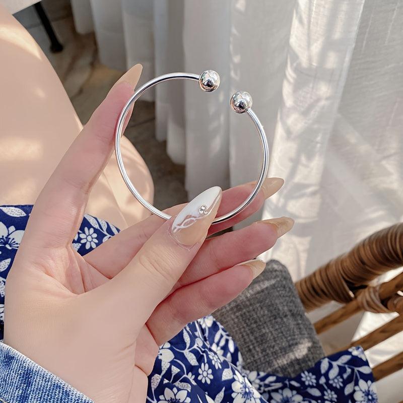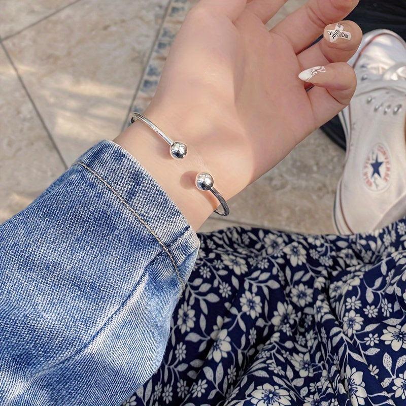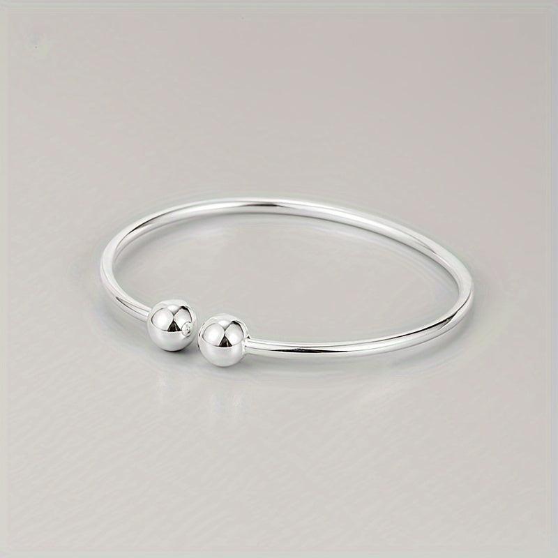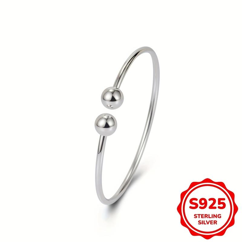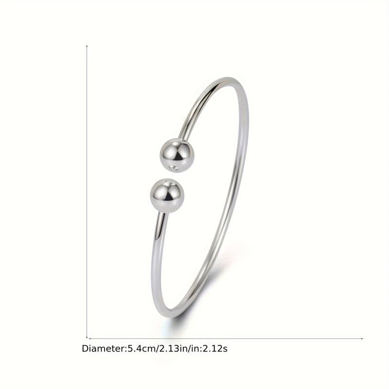 This versatile bracelet features a double ball design and is made of high-quality S925 sterling silver. It weighs 5g and has a silvery finish.