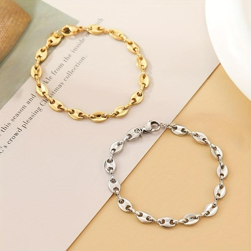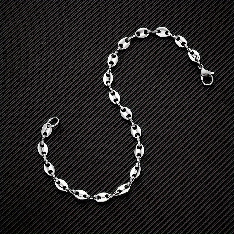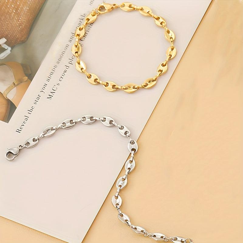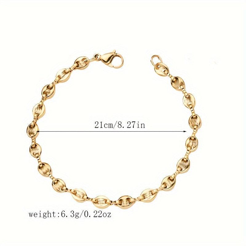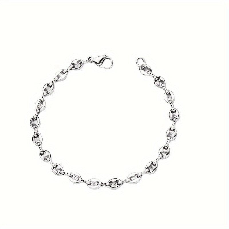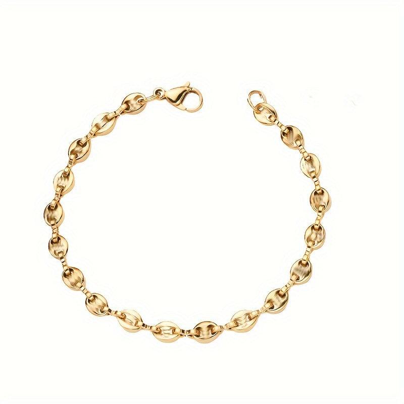 Add a touch of elegance to your hand with this stylish minimalist stainless steel chain accessory. Featuring a coffee bean oval cutout design, this piece is versatile and perfect for everyday wear.