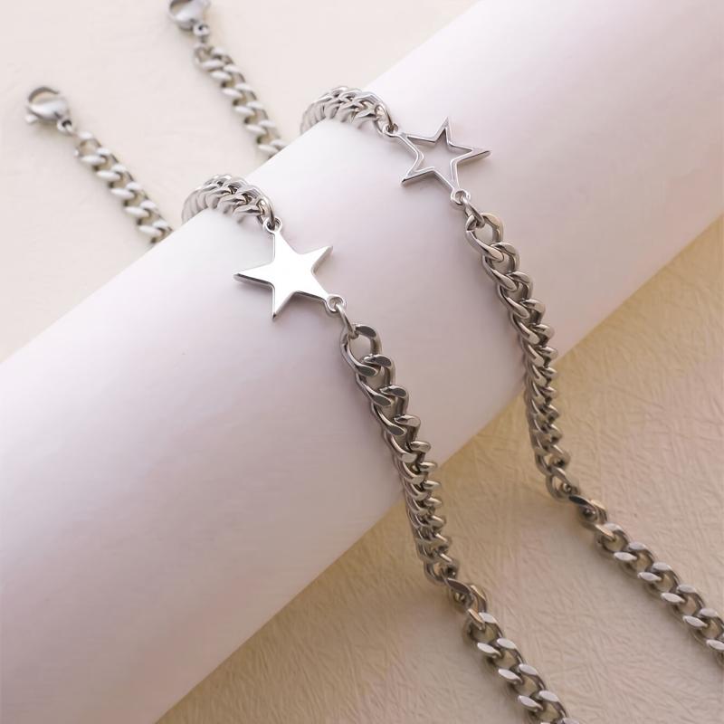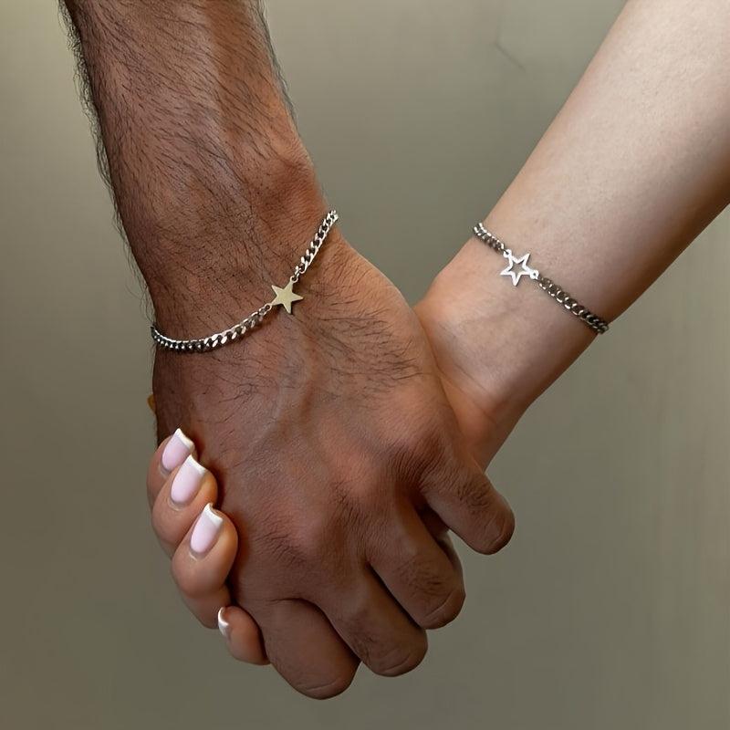 This fashionable bracelet features a minimalist design with hollowed out stars, perfect for couples. The end feel of the bracelet adds a touch of elegance to any outfit.