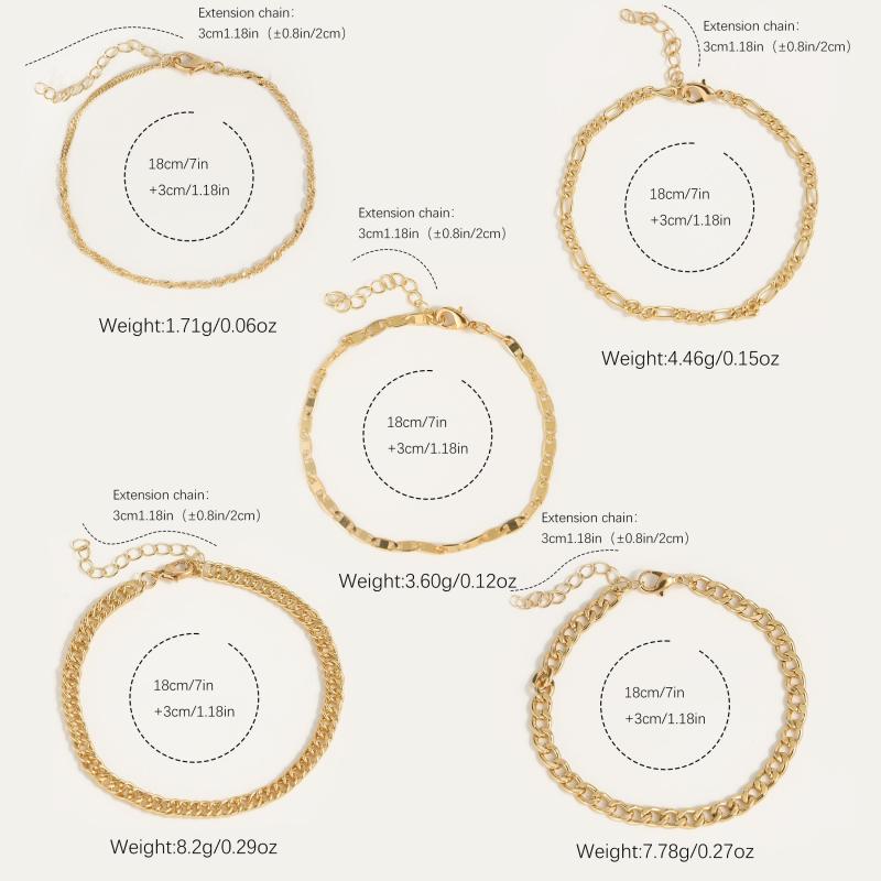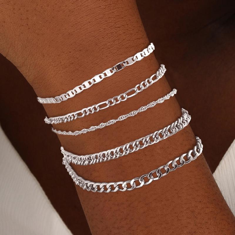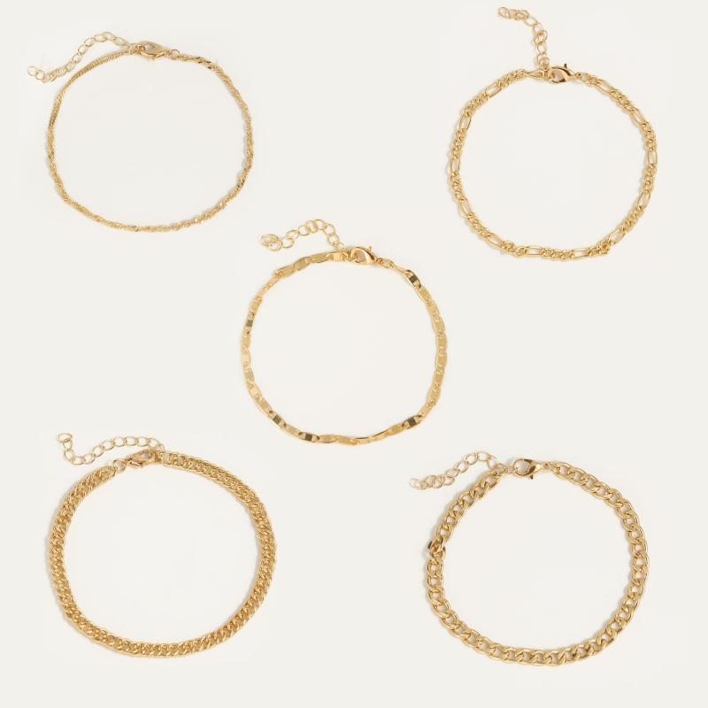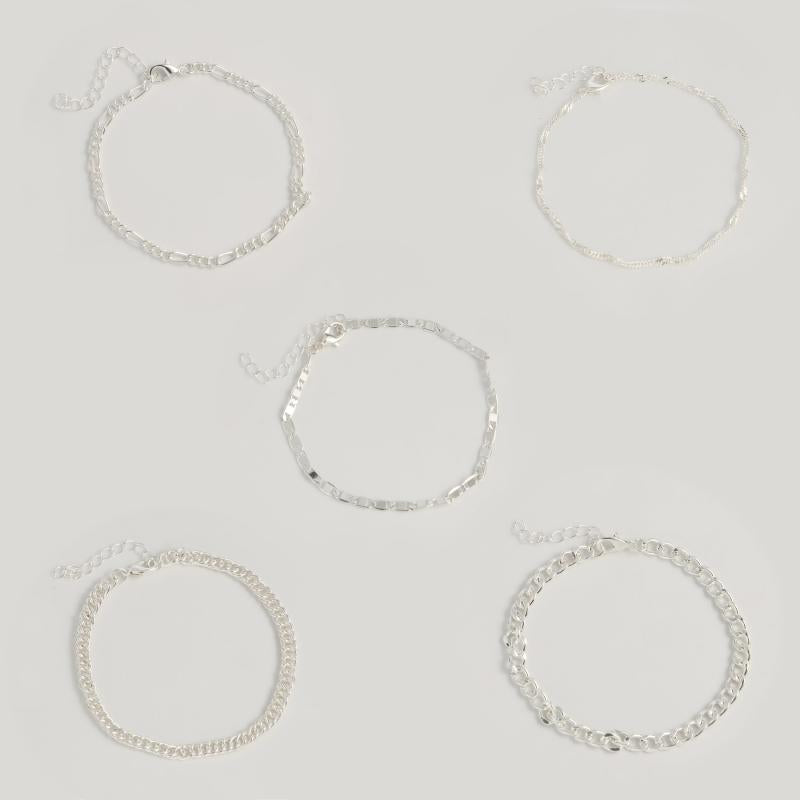 Elevate your style with this set of five fashionable women's bracelets. Each bracelet features a minimalist and delicate design, perfect for stacking together. Made with low-allergy materials, these bracelets are suitable for everyday wear.