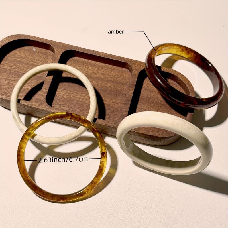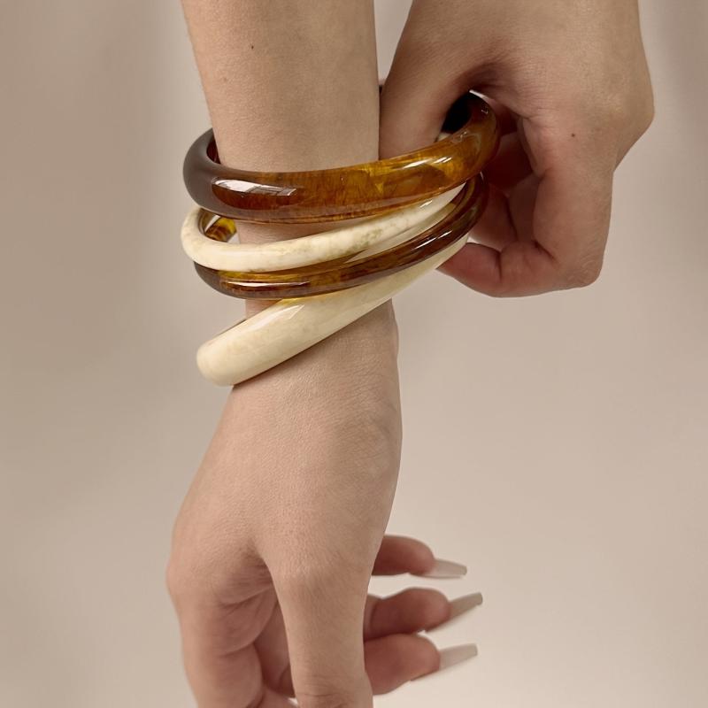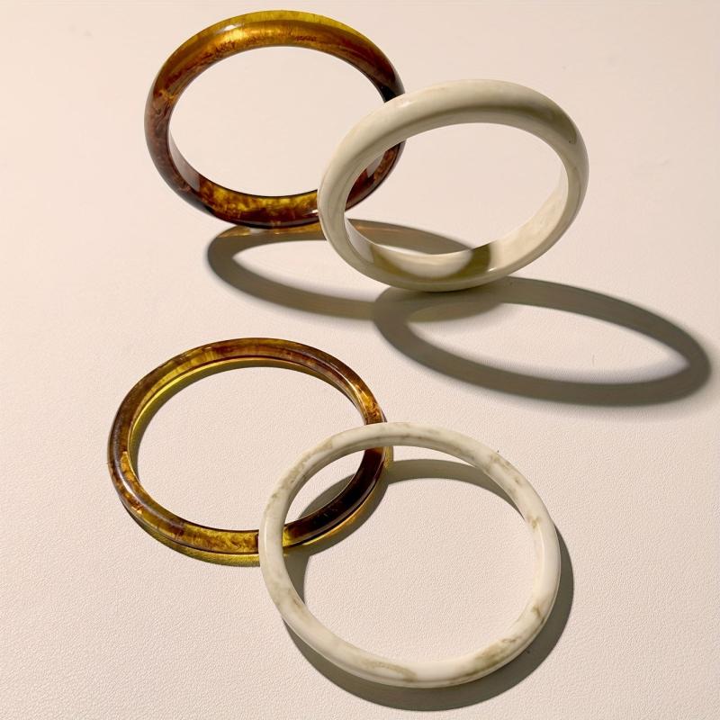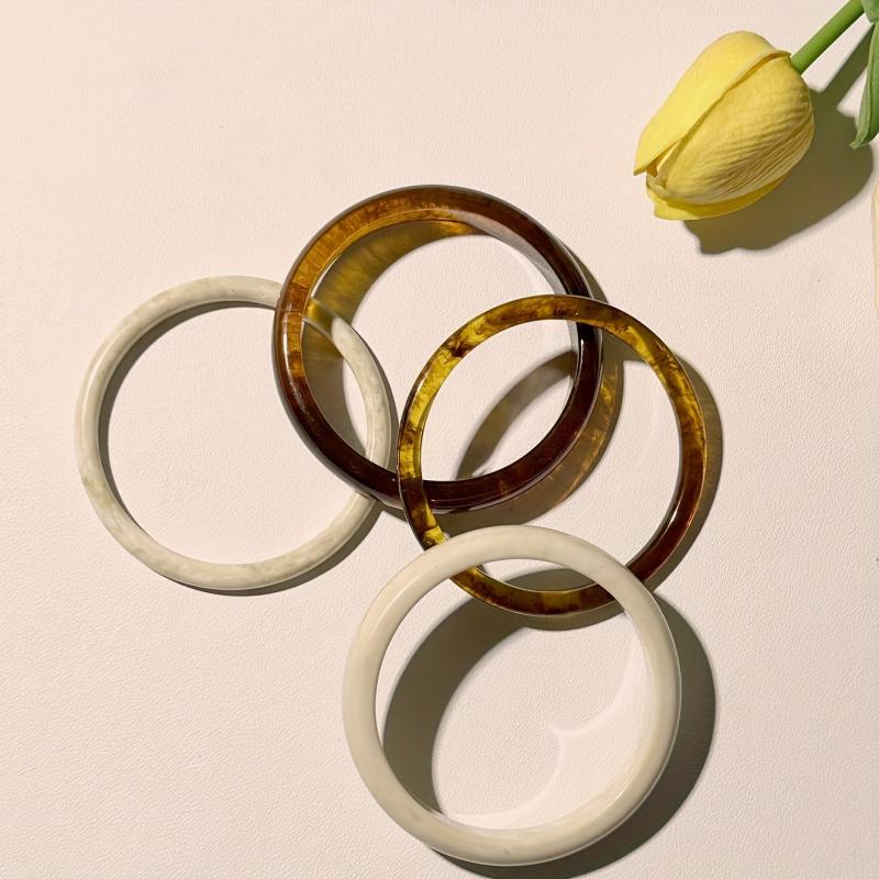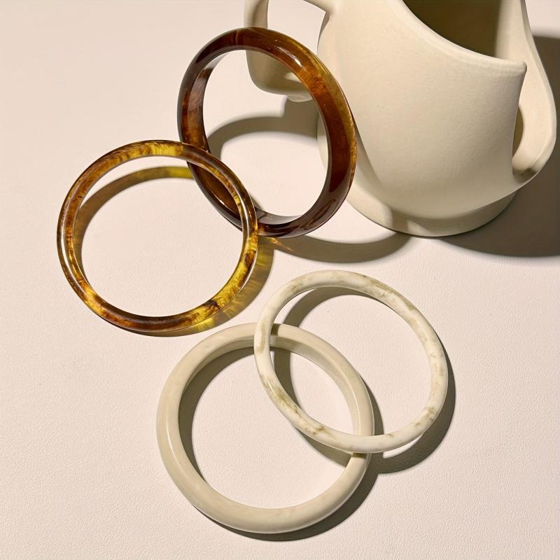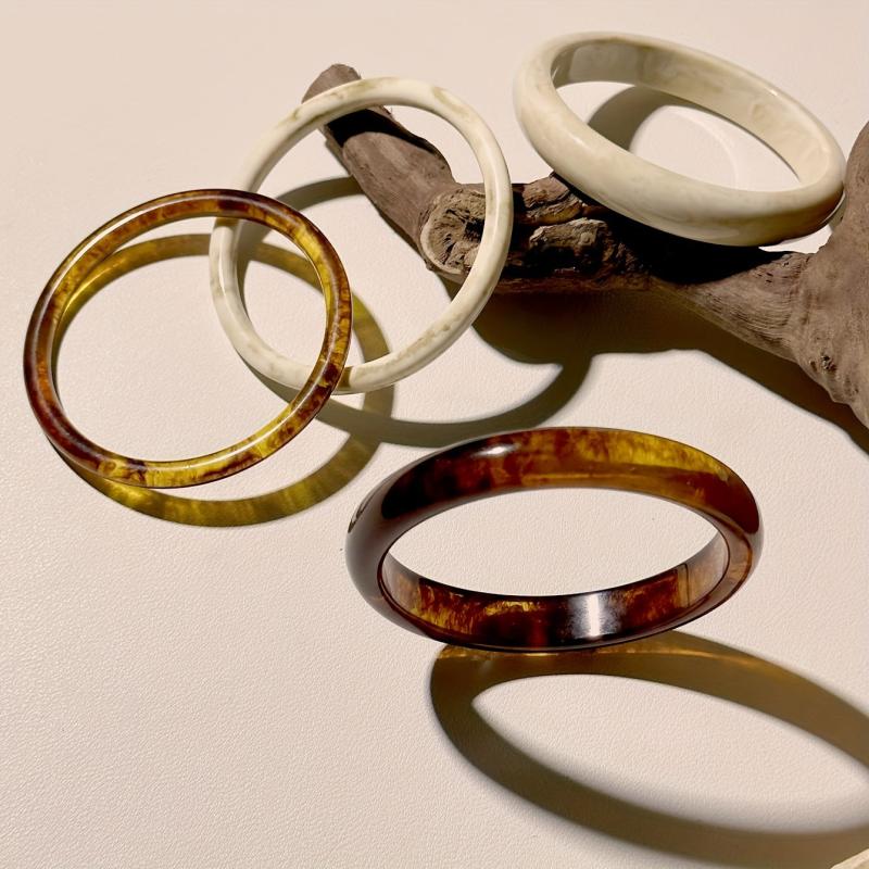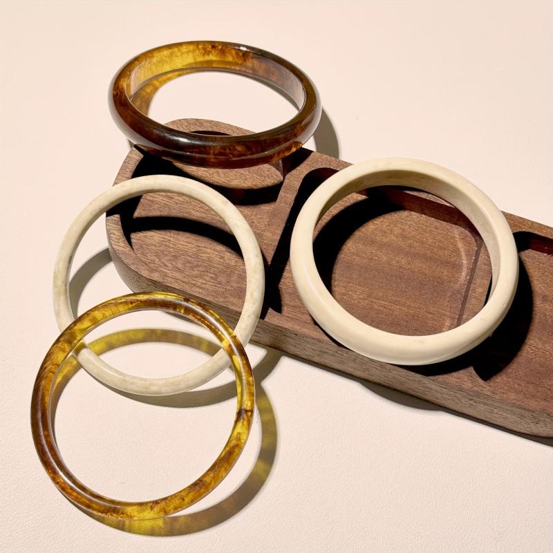 Elegant 4-piece set of small resin bracelets in mocha and amber tones. Ideal for daily wear, parties, and gifting to friends.